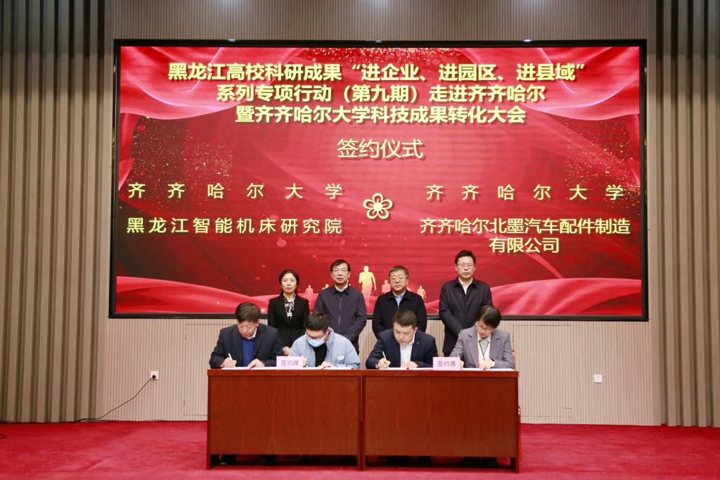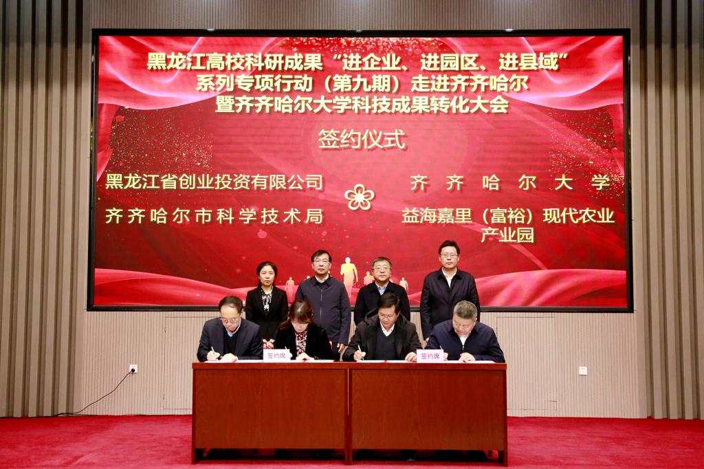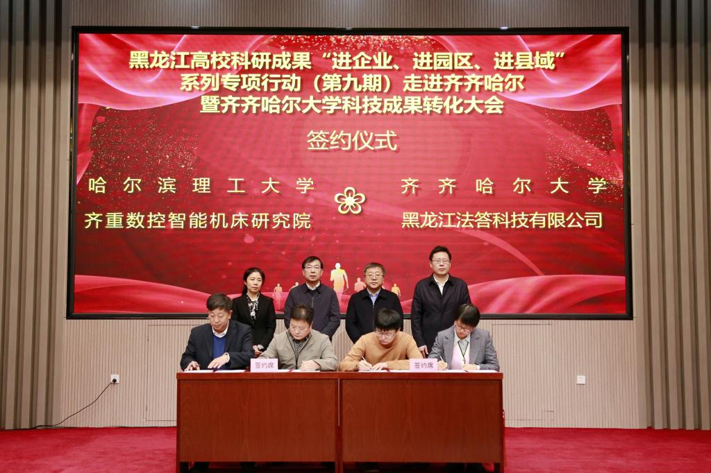 黑龍江省創(chuàng)業(yè)投資有限公司、益海嘉里(富裕)現(xiàn)代農(nóng)業(yè)產(chǎn)業(yè)園、齊重?cái)?shù)控裝備有限公司、黑龍江智能機(jī)床研究院、齊齊哈爾龍江阜豐生物科技有限公司、黑龍江法答科技有限公司、威海華邁醫(yī)療器械科技有限公司和齊齊哈爾北墨汽車配件制造有限公司,分別與我校及市科學(xué)技術(shù)局、哈爾濱理工大學(xué)簽署了合作協(xié)議。