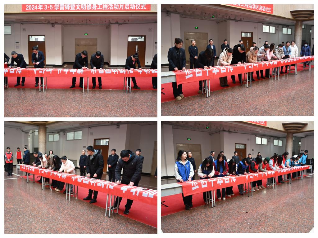隨后,與會(huì)師生在印有文明標(biāo)語的條幅上簽名,承諾將以實(shí)際行動(dòng)踐行雷鋒精神,共同推動(dòng)文明修身工程。