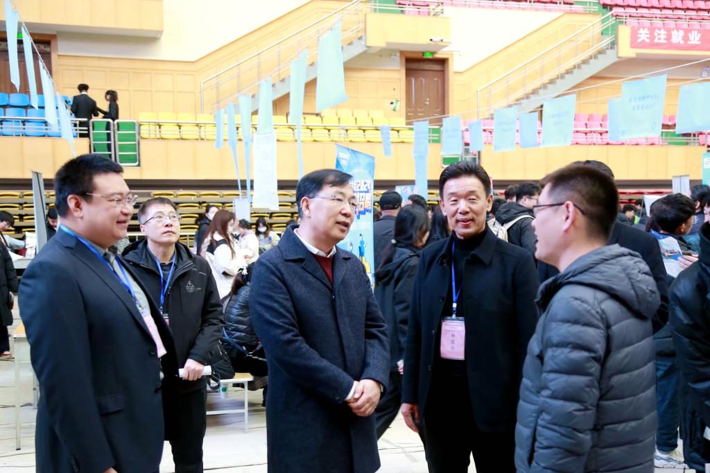 供需見(jiàn)面會(huì)現(xiàn)場(chǎng)人頭攢動(dòng)、比肩繼踵,郝文斌在招生就業(yè)處負(fù)責(zé)人陪同下,與校招企業(yè)代表進(jìn)行了深入交流,詳細(xì)了解用人需求及薪資待遇,并要求相關(guān)部門(mén)要精準(zhǔn)對(duì)接、細(xì)化服務(wù)、做好企業(yè)回訪,以企業(yè)人力需求撬動(dòng)人才培養(yǎng)方案再完善,真正實(shí)現(xiàn)校企人才輸送無(wú)縫對(duì)接。相關(guān)部門(mén)及學(xué)院班子成員、輔導(dǎo)員和專業(yè)教師也紛紛來(lái)到供需見(jiàn)面會(huì)現(xiàn)場(chǎng),詳細(xì)了解用人單位人才需求和畢業(yè)生的求職意向,針對(duì)同學(xué)們的就業(yè)困惑給予一對(duì)一幫助和指導(dǎo)。