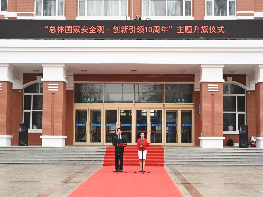 今年是習(xí)近平總書記提出總體國家安全觀10周年,今年的4月15日是第九個全民國家安全教育日。為貫徹落實(shí)習(xí)近平總書記關(guān)于加強(qiáng)國家安全教育的重要指示批示精神,深入開展國家安全宣傳教育活動,使關(guān)心國家安全、維護(hù)國家安全成為全校師生員工的思想共識和行動自覺,4月15日,我校在中區(qū)廣場舉行全民國家安全教育日主題升旗儀式暨“總體國家安全觀·創(chuàng)新引領(lǐng)10周年”主題團(tuán)日活動。學(xué)校黨委副書記張文治出席活動,學(xué)生工作部(學(xué)生處)部(處)長杜海權(quán)、武裝部(保衛(wèi)處)部(處)長趙振華、校團(tuán)委書記羅霄和相關(guān)部門全體干部,各學(xué)院(部)團(tuán)干部、團(tuán)員代表、學(xué)校參軍預(yù)備隊代表參加活動?;顒佑闪_霄主持。