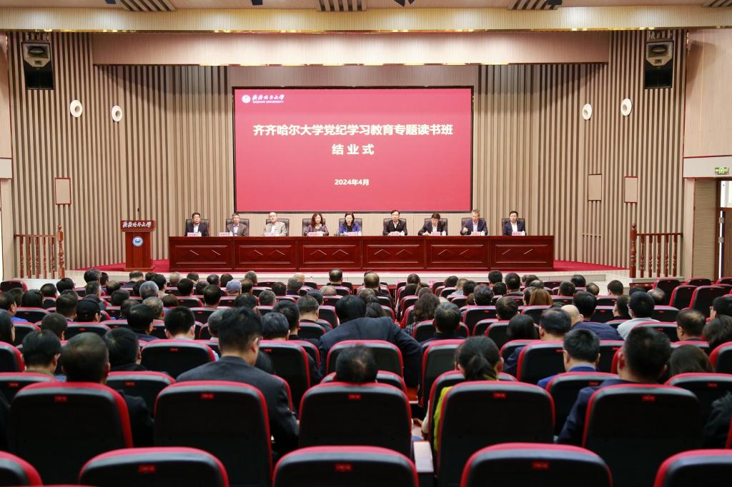 按照省委統(tǒng)一部署和學(xué)校黨委安排,4月26日下午,齊齊哈爾大學(xué)黨紀學(xué)習(xí)教育專題讀書班在日新大廈四樓會議室舉行結(jié)業(yè)式。校領(lǐng)導(dǎo)丁宏、郝文斌、齊宏偉、張文治、王剛、叢喜權(quán)、張樹軍、陸占權(quán),全校副處級以上干部參加結(jié)業(yè)式。校黨委書記丁宏主持結(jié)業(yè)式并講話。