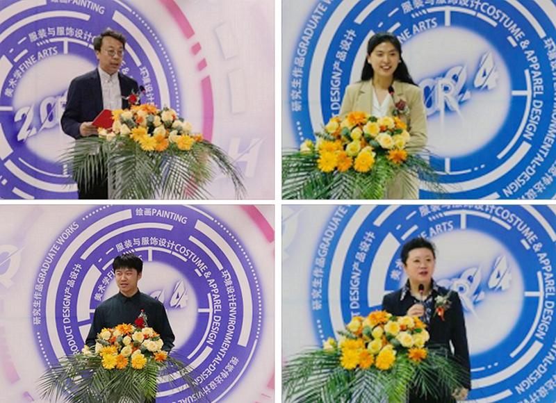 開(kāi)幕式上,美術(shù)與藝術(shù)設(shè)計(jì)學(xué)院院長(zhǎng)范鐵明代表學(xué)院致辭;服裝與服飾設(shè)計(jì)專業(yè)湯曉彤老師代表2024屆畢業(yè)設(shè)計(jì)指導(dǎo)教師發(fā)言;環(huán)境設(shè)計(jì)201班劉騰飛同學(xué)代表2024屆全體畢業(yè)生發(fā)表畢業(yè)感言;學(xué)校教務(wù)處處長(zhǎng)劉省非宣布展覽開(kāi)幕。