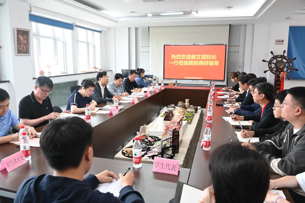 6月21日上午,校長(zhǎng)郝文斌在相關(guān)部門(mén)負(fù)責(zé)人陪同下,深入美術(shù)與藝術(shù)設(shè)計(jì)學(xué)院調(diào)研指導(dǎo)工作,征詢干部師生對(duì)學(xué)校發(fā)展建設(shè)的意見(jiàn)建議。美術(shù)與藝術(shù)設(shè)計(jì)學(xué)院領(lǐng)導(dǎo)班子成員、教師代表、學(xué)生代表參加了調(diào)研座談會(huì)。