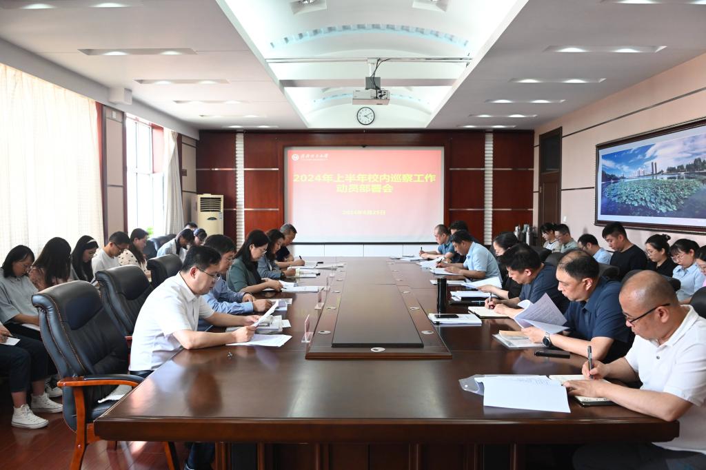 6月25日下午,學(xué)校在辦公樓504會(huì)議室召開2024年上半年校內(nèi)巡察工作動(dòng)員部署會(huì),校領(lǐng)導(dǎo)丁宏、齊宏偉、張文治、叢喜權(quán)、陸占權(quán)出席會(huì)議,校黨委巡察工作領(lǐng)導(dǎo)小組、巡察辦成員以及2024年上半年校內(nèi)巡察4個(gè)巡察組全體成員參加會(huì)議。會(huì)議由校黨委常委、紀(jì)委書記、校黨委巡察工作領(lǐng)導(dǎo)小組副組長(zhǎng)陸占權(quán)主持。