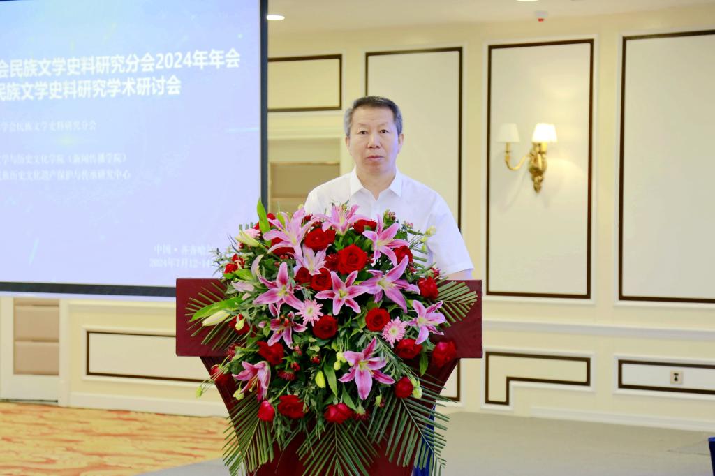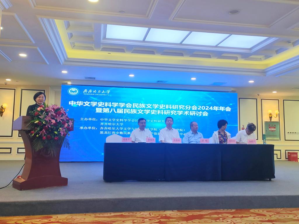 7月13日,由中華文學(xué)史料學(xué)學(xué)會(huì)民族文學(xué)史料研究分會(huì)、齊齊哈爾大學(xué)共同主辦,齊齊哈爾大學(xué)文學(xué)與歷史文化學(xué)院(新聞傳播學(xué)院)、黑龍江省少數(shù)民族歷史文化遺產(chǎn)保護(hù)與傳承研究中心承辦的中華文學(xué)史料學(xué)學(xué)會(huì)民族文學(xué)史料研究分會(huì)2024年年會(huì)暨第八屆民族文學(xué)史料研究學(xué)術(shù)研討會(huì)在齊齊哈爾和美酒店舉行。副校長(zhǎng)叢喜權(quán)教授出席會(huì)議,來(lái)自中國(guó)社會(huì)科學(xué)院、中央民族大學(xué)、西南民族大學(xué)等全國(guó)30余所高校和研究機(jī)構(gòu)的專家學(xué)者百余人參加本次會(huì)議,會(huì)議開幕式由文學(xué)與歷史文化學(xué)院(新聞傳播學(xué)院)院長(zhǎng)吳麗華教授主持。