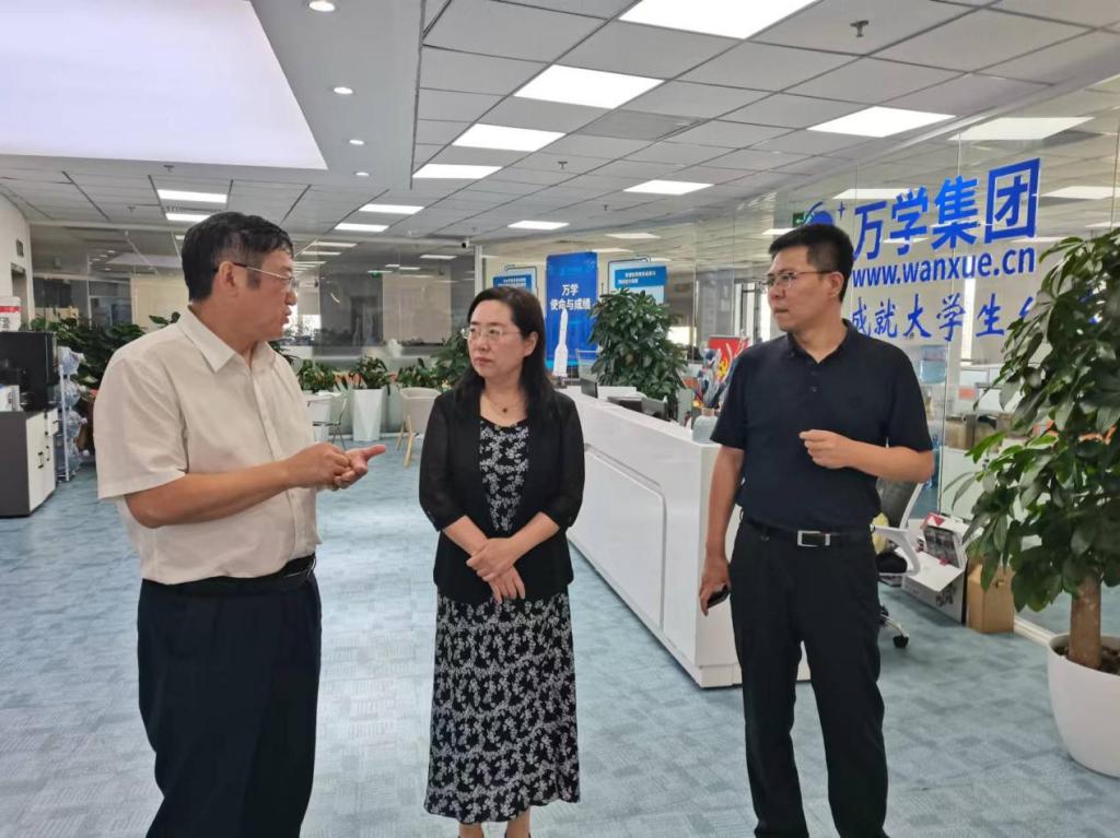 在北京萬學(xué)教育科技有限公司,丁宏一行就職業(yè)發(fā)展精細規(guī)劃、核心職業(yè)能力培訓(xùn)、就業(yè)培訓(xùn)與深度服務(wù)、創(chuàng)新創(chuàng)業(yè)教育、先進產(chǎn)業(yè)和專精特新人才培養(yǎng)、高校應(yīng)用型轉(zhuǎn)型發(fā)展等方面與副董事長張強進行了深入交流。