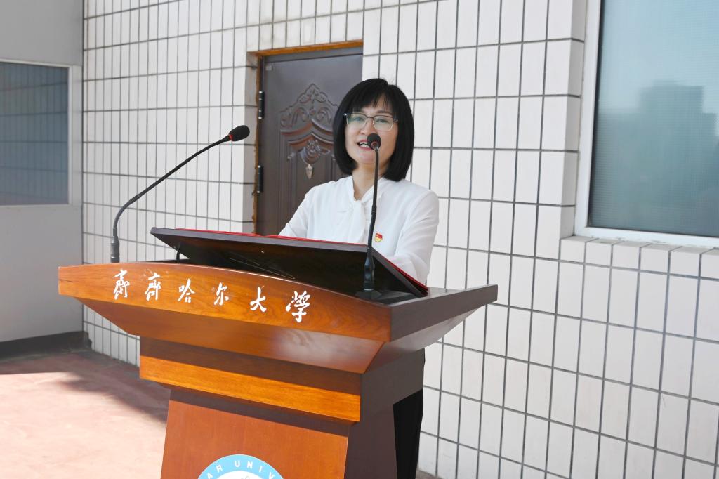 教師代表、黑龍江省青年教學(xué)名師、齊齊哈爾市第十屆青年五四獎(jiǎng)?wù)芦@得者、生命科學(xué)與農(nóng)林學(xué)院副院長(zhǎng)、李珊珊教授發(fā)言。她代表全體教師歡迎新生加入齊大大家庭,她表示,同學(xué)們對(duì)美好大學(xué)生活的向往,就是老師們的期望,全體教師將傾聽同學(xué)們的聲音,用心用情陪伴同學(xué)們成長(zhǎng)。她希望大家堅(jiān)定奮斗目標(biāo)、刻苦學(xué)習(xí)鉆研、矢志科技報(bào)國(guó),努力成為齊大精神的傳承者,為推進(jìn)學(xué)校有特色高水平應(yīng)用型綜合性大學(xué)建設(shè),添磚加瓦、增光添彩。