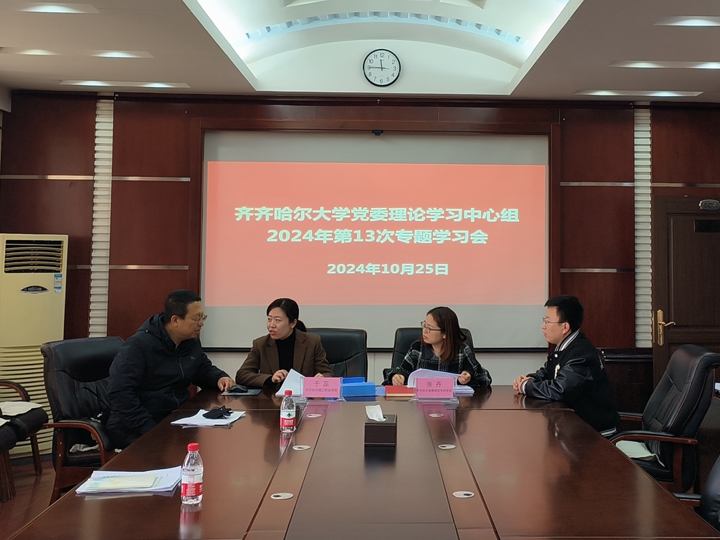 10月25日上午,學(xué)校黨委理論學(xué)習(xí)中心組在辦公樓504會議室召開2024年第13次集體學(xué)習(xí)會,專題學(xué)習(xí)研討習(xí)近平總書記在全國教育大會上的重要講話精神和全國教育大會精神。校黨委書記丁宏主持會議并講話。學(xué)校黨委理論學(xué)習(xí)中心組全體成員參加學(xué)習(xí)會。受省委教育工委指派,齊齊哈爾醫(yī)學(xué)院黨委常委、宣傳統(tǒng)戰(zhàn)部部長張寶林,齊齊哈爾高等師范??茖W(xué)校黨委委員、宣傳部部長張丹,齊齊哈爾理工職業(yè)學(xué)院宣傳統(tǒng)戰(zhàn)部部長于蕊列席旁聽了會議。