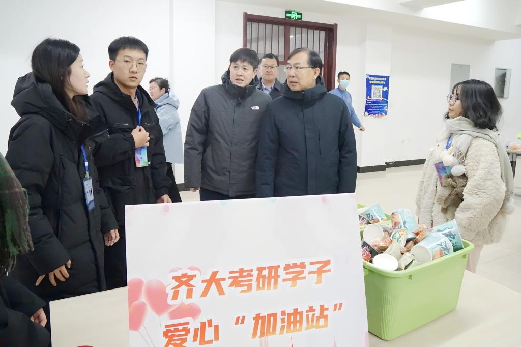 郝文斌代表學(xué)校向考研學(xué)生表示關(guān)懷和慰問(wèn),對(duì)學(xué)生備考過(guò)程中所表現(xiàn)出齊大人拼搏進(jìn)取、昂揚(yáng)向上的精神表示肯定和贊揚(yáng)。他細(xì)致詢問(wèn)了同學(xué)們的院校報(bào)考、學(xué)習(xí)狀態(tài)和生活狀況,勉勵(lì)考研學(xué)子“路雖遠(yuǎn)行則將至,事雖難做則必成”要注意勞逸結(jié)合、科學(xué)調(diào)整復(fù)習(xí)策略,樂(lè)觀積極迎接大考,并預(yù)祝同學(xué)們金榜題名,一戰(zhàn)成“碩”。在走訪慰問(wèn)過(guò)程中,郝文斌還仔細(xì)查看了考研自習(xí)室的學(xué)習(xí)環(huán)境和條件保障,他強(qiáng)調(diào)各部門(mén)要多措并舉、全員聯(lián)動(dòng)、凝聚合力,積極創(chuàng)造條件為考研學(xué)生提供全面、優(yōu)質(zhì)的服務(wù)和保障,積極教育引導(dǎo)好考研學(xué)生以理性平和心態(tài)迎接“大考”。
