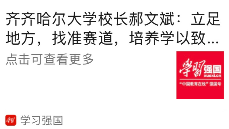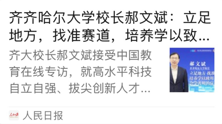 郝文斌:我覺得這是一個非常好的問題,也是對高校的一個現(xiàn)實考驗。之前也有過“錢學(xué)森之問”,如何把創(chuàng)新人才培養(yǎng)和國家重大戰(zhàn)略、未來發(fā)展有機(jī)結(jié)合?對于創(chuàng)新人才的培養(yǎng),我認(rèn)為,首先要厘清“創(chuàng)新人才”的內(nèi)涵。我們國家有3000多所高校,不同類型、不同層次的高校,其辦學(xué)定位和目標(biāo)任務(wù)是不同的。齊齊哈爾大學(xué),屬于應(yīng)用型大學(xué),我們要找準(zhǔn)我們的賽道,應(yīng)用型大學(xué)和北大、清華等研究型大學(xué)建設(shè)世界一流大學(xué)的賽道是不一樣的。