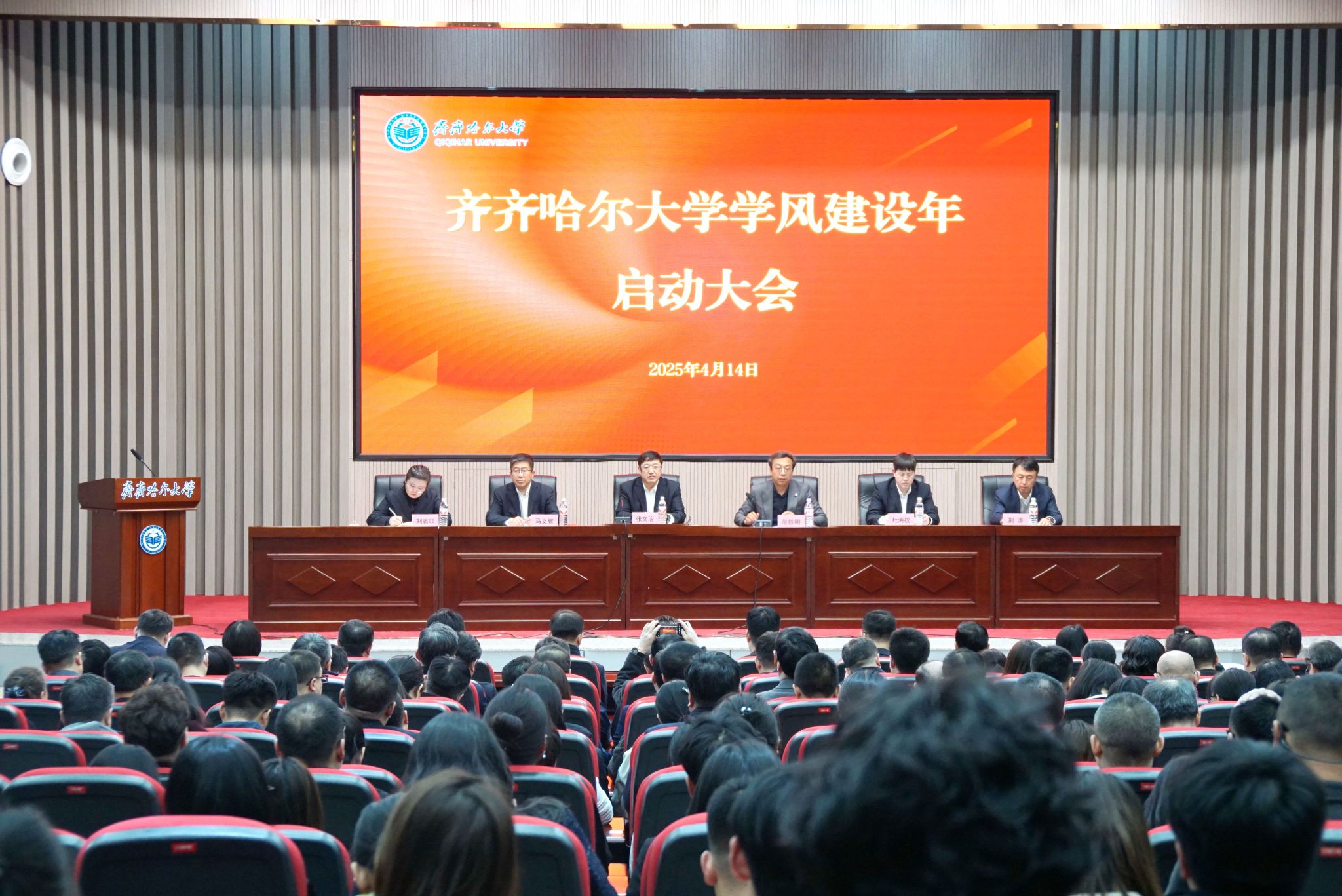 4月14日下午,齊齊哈爾大學(xué)學(xué)風(fēng)建設(shè)年啟動大會在日新大廈4樓報告廳舉行。校領(lǐng)導(dǎo)張文治、范鐵明、馬文輝出席會議,相關(guān)職能部門負責(zé)人、各學(xué)院領(lǐng)導(dǎo)班子成員、專業(yè)系(部)主任、教師代表、全體輔導(dǎo)員和學(xué)生代表參加會議。會議由副校長范鐵明主持。