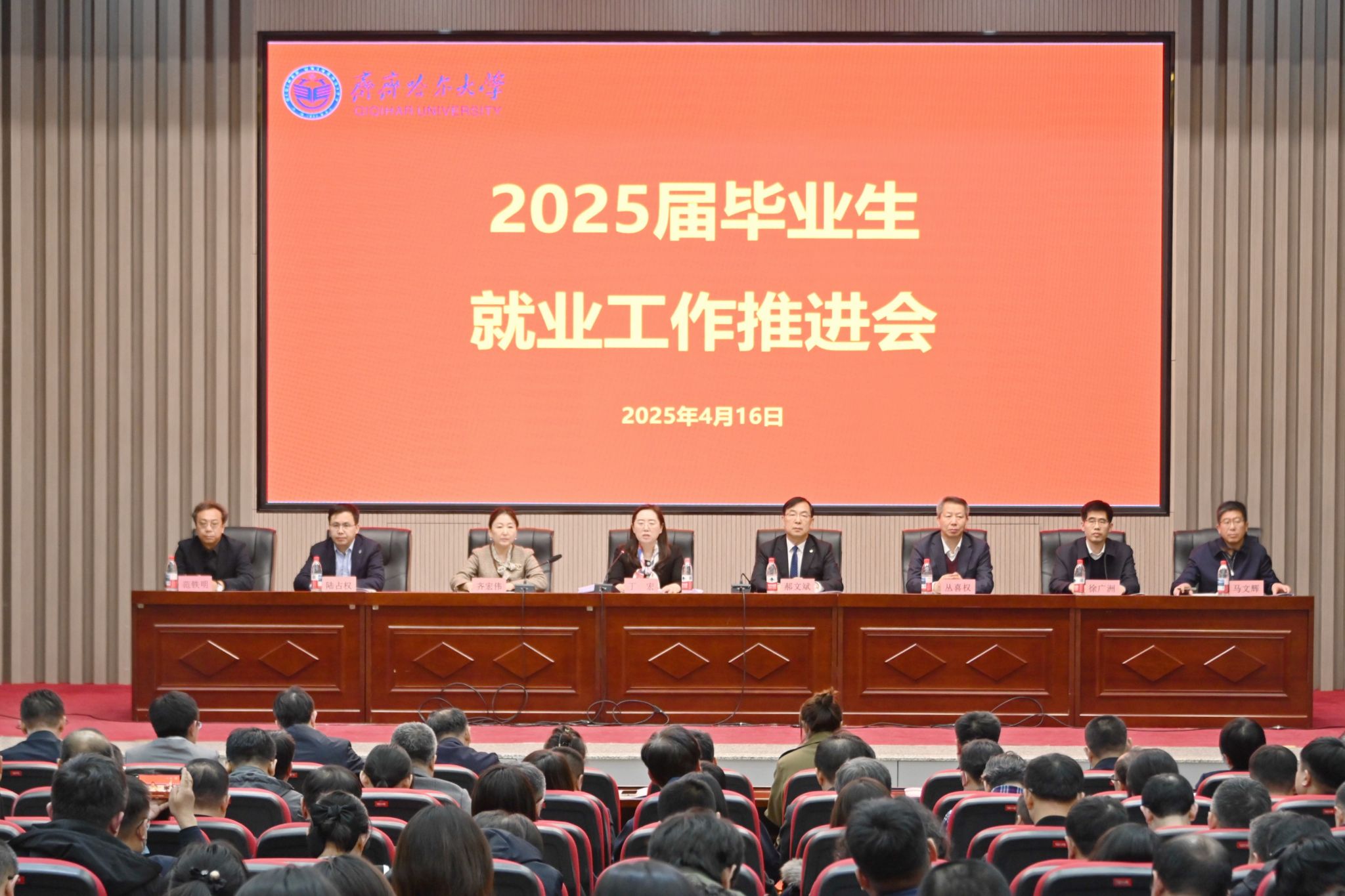 為全面總結(jié)前期就業(yè)工作開展情況及部署下一階段工作任務(wù),全力推進(jìn)畢業(yè)生就業(yè)工作“百日攻堅(jiān)行動”,4月16日,我校在日新大廈四樓報(bào)告廳召開2025屆畢業(yè)生就業(yè)工作推進(jìn)會議。會議由校長、黨委副書記郝文斌主持,黨委副書記齊宏偉宣讀了2024屆畢業(yè)生就業(yè)獎勵文件,黨委書記丁宏在會上作講話。學(xué)校領(lǐng)導(dǎo)班子成員、就業(yè)工作專班、相關(guān)職能部門負(fù)責(zé)同志、學(xué)院班子成員、學(xué)科、專業(yè)帶頭人、2025屆及2026屆畢業(yè)生輔導(dǎo)員參加會議。