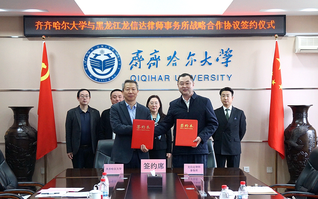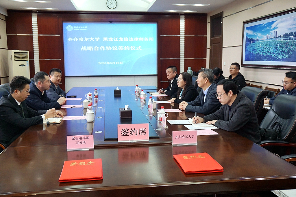 5月16日上午,齊齊哈爾大學(xué)與黑龍江龍信達(dá)律師事務(wù)所戰(zhàn)略合作簽約儀式在學(xué)校辦公樓504會(huì)議室舉行。省政協(xié)常委、律師協(xié)會(huì)副會(huì)長(zhǎng)、黑龍江龍信達(dá)律師事務(wù)所主任張鐵,副主任、學(xué)校優(yōu)秀校友謝桐平,合伙人任守一,校黨委書記丁宏,副校長(zhǎng)、黨委常委叢喜權(quán)等共同出席簽約儀式。