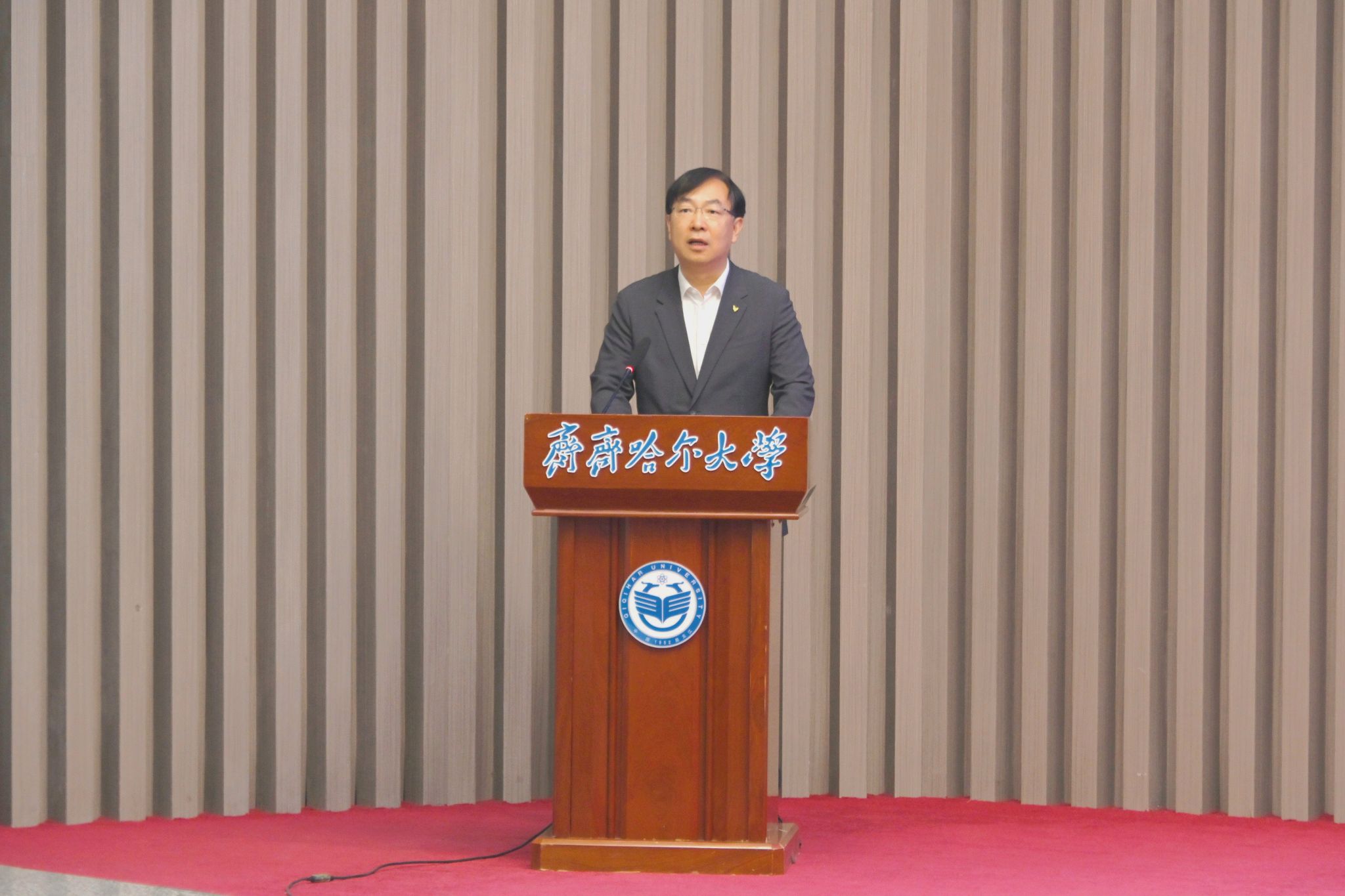 5月28日,2025年齊齊哈爾市科技活動(dòng)周和全國(guó)科技工作者日啟動(dòng)儀式在我校舉行,本次活動(dòng)由市科技局、市委宣傳部、市科協(xié)、市公安局主辦,齊齊哈爾大學(xué)承辦。市委常委、副市長(zhǎng)譚緒東,市人大常委會(huì)副主任戴曉霞,市政協(xié)副主席殷元虎出席啟動(dòng)儀式,社會(huì)各界代表300余人參加活動(dòng)。校長(zhǎng)、黨委副書記郝文斌出席活動(dòng)并致辭,副校長(zhǎng)、黨委常委、組織部長(zhǎng)馬文輝出席活動(dòng)。