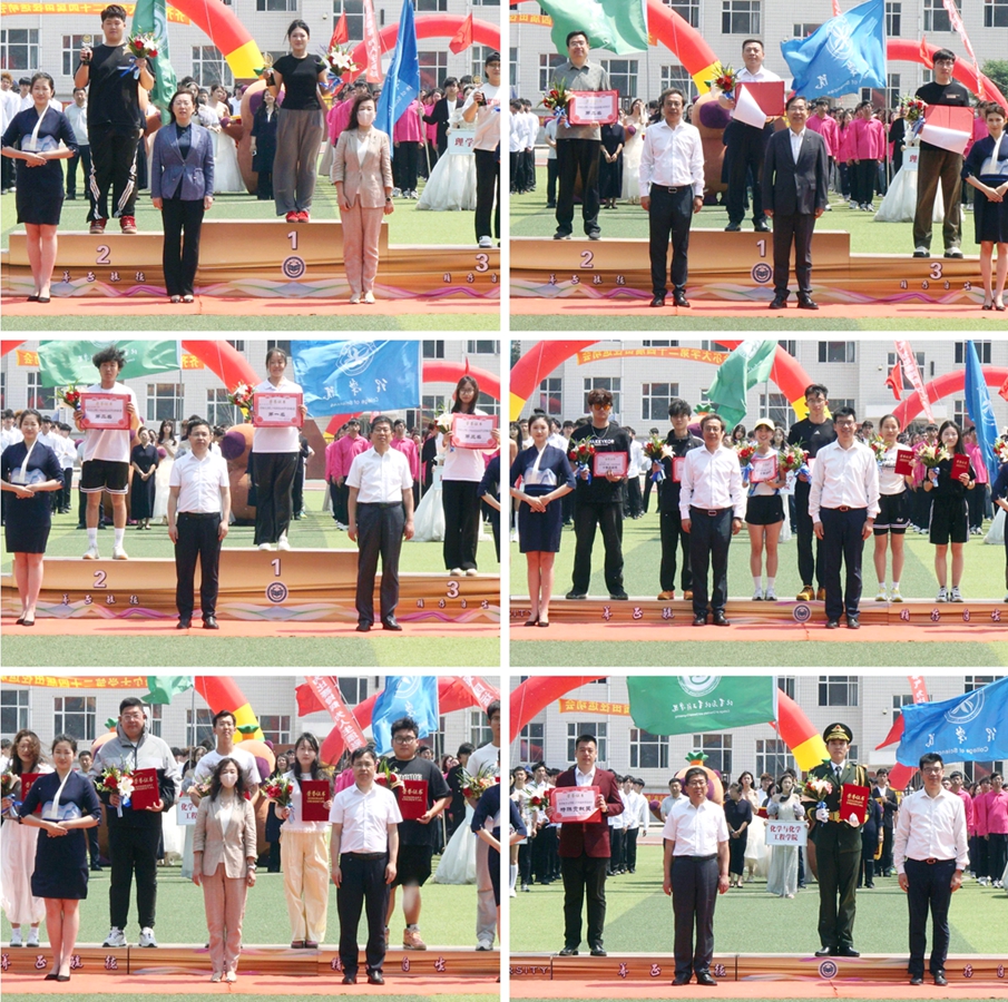 在本屆運動會上,教師教育學(xué)院、食品與生物工程學(xué)院、材料科學(xué)與工程學(xué)院、計算機與控制工程學(xué)院、經(jīng)濟(jì)與管理學(xué)院、化學(xué)與化學(xué)工程學(xué)院榮獲學(xué)生組團(tuán)體總分前六名;機關(guān)、化學(xué)與化學(xué)工程學(xué)院、生命科學(xué)與農(nóng)林學(xué)院、材料科學(xué)與工程學(xué)院、理學(xué)院、食品與生物工程學(xué)院榮獲教工組團(tuán)體總分前六名;教師教育學(xué)院、經(jīng)濟(jì)與管理學(xué)院、食品與生物工程學(xué)院分別獲得學(xué)生團(tuán)體操比賽前三名;理學(xué)院、體育學(xué)院、校國旗護(hù)衛(wèi)隊榮獲“特殊貢獻(xiàn)獎”;教師教育學(xué)院、食品與生物工程學(xué)院、文學(xué)與歷史文化學(xué)院(新聞傳播學(xué)院)、機電工程學(xué)院、經(jīng)濟(jì)與管理學(xué)院、哲學(xué)與法學(xué)學(xué)院、通信與電子工程學(xué)院、化學(xué)與化學(xué)工程學(xué)院榮獲“體育道德風(fēng)尚獎”;教師教育學(xué)院周金紅等10名同學(xué)榮獲“十佳運動員”稱號。在本次賽會中,共有4項校運會紀(jì)錄被打破。