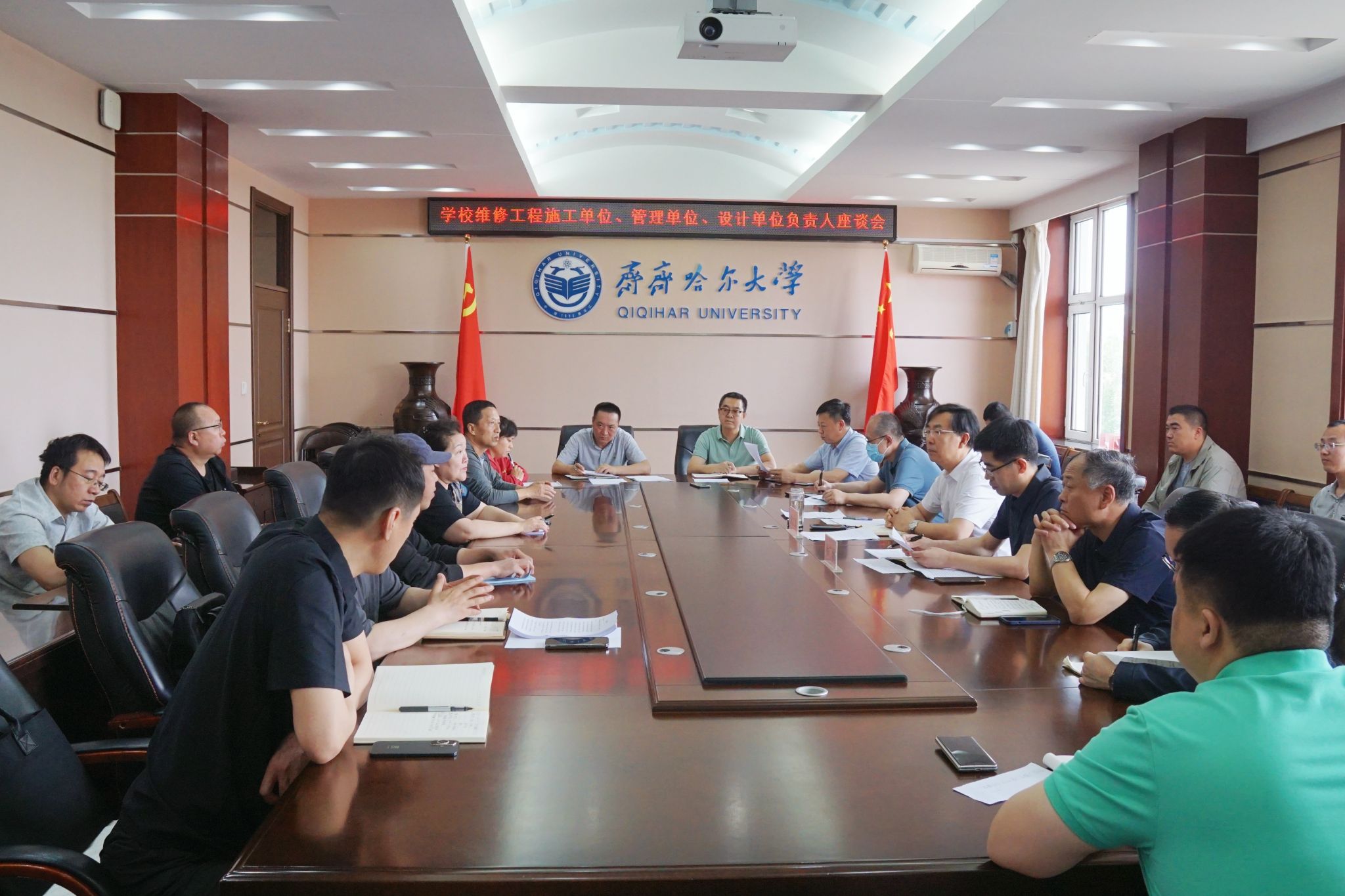6月13日,學(xué)校在辦公樓504會(huì)議室,召開學(xué)校維修工程施工單位、監(jiān)理單位、設(shè)計(jì)單位負(fù)責(zé)人座談會(huì),校長郝文斌、副校長徐廣洲出席座談會(huì),相關(guān)部門負(fù)責(zé)人參加座談會(huì)。