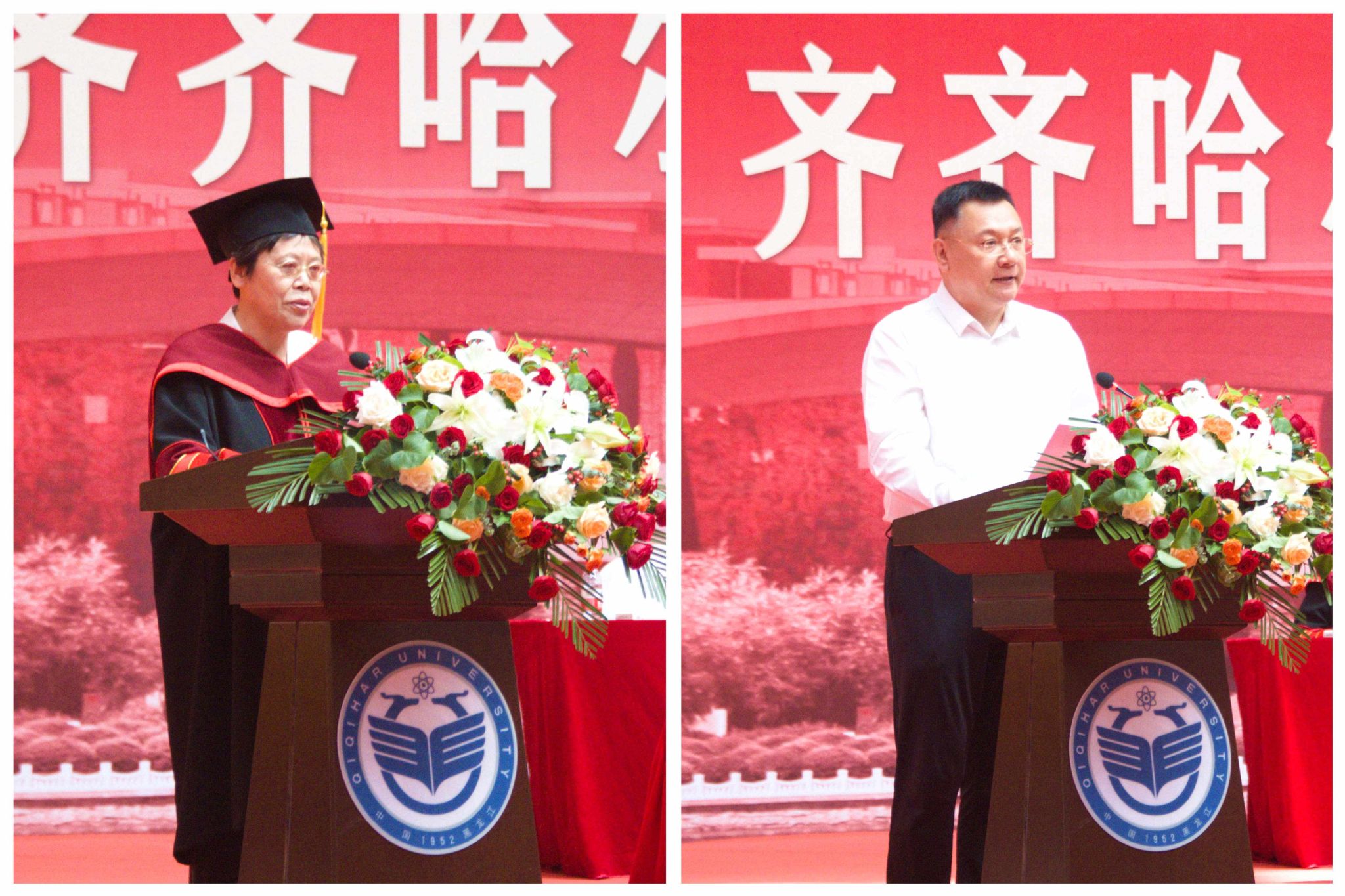 十三屆全國(guó)人大代表、齊齊哈爾大學(xué)-黑龍江省果蔬雜糧飲品研發(fā)中心主任郭成宇教授代表全體教師,為同學(xué)們加油鼓勁、送上祝福。優(yōu)秀校友代表、冷網(wǎng)供應(yīng)鏈(山東)有限公司董事長(zhǎng)、山東省黑龍江商會(huì)監(jiān)事長(zhǎng)、齊齊哈爾大學(xué)濟(jì)南校友會(huì)會(huì)長(zhǎng)、我校95屆輕化系皮革工程專業(yè)畢業(yè)生劉雷與學(xué)弟學(xué)妹們分享了畢業(yè)30年來(lái)參加工作、個(gè)人創(chuàng)業(yè)的經(jīng)歷和感悟。