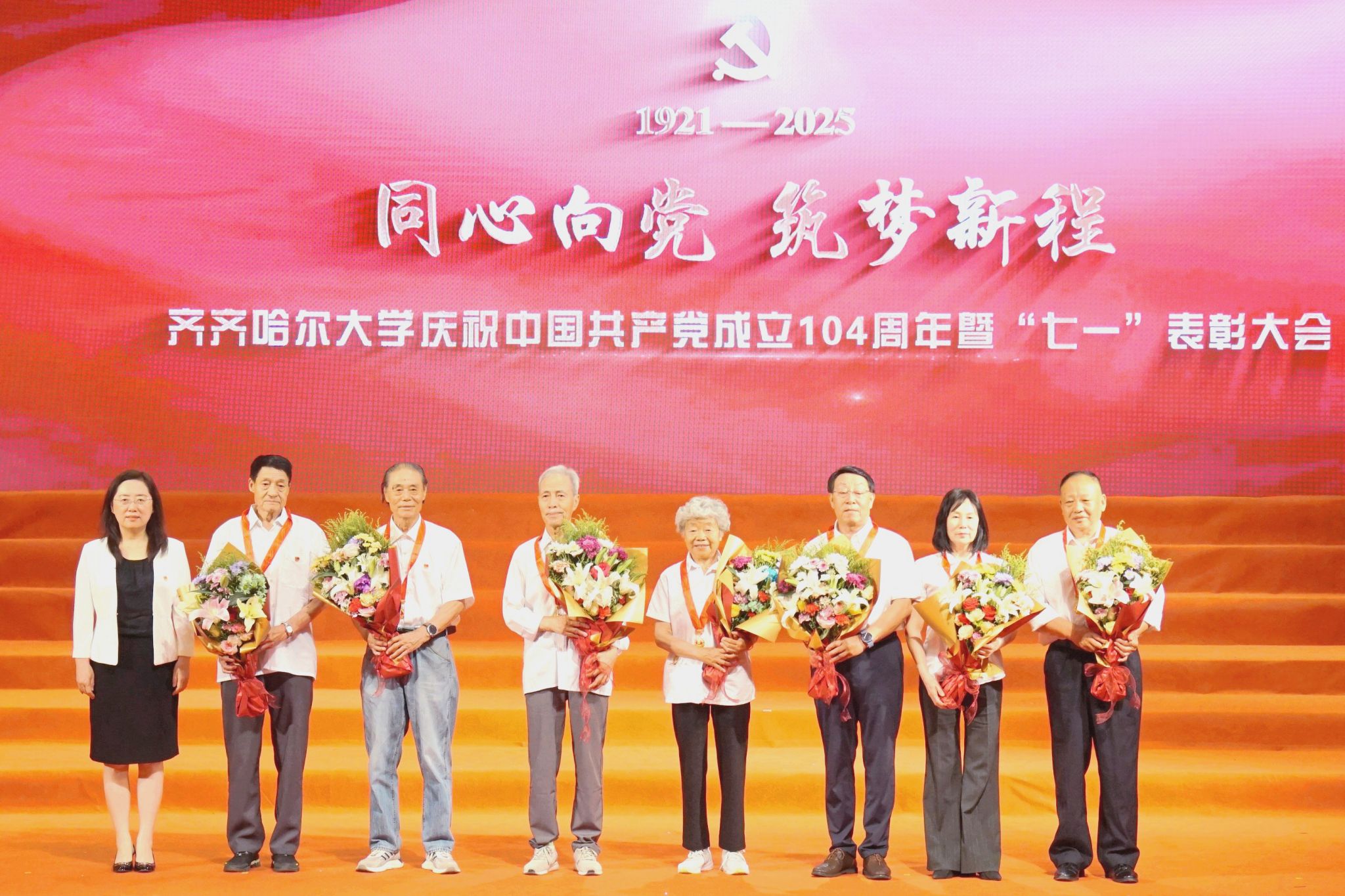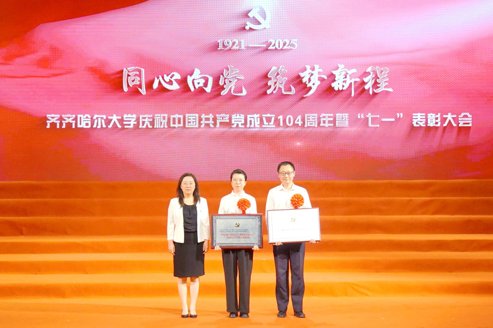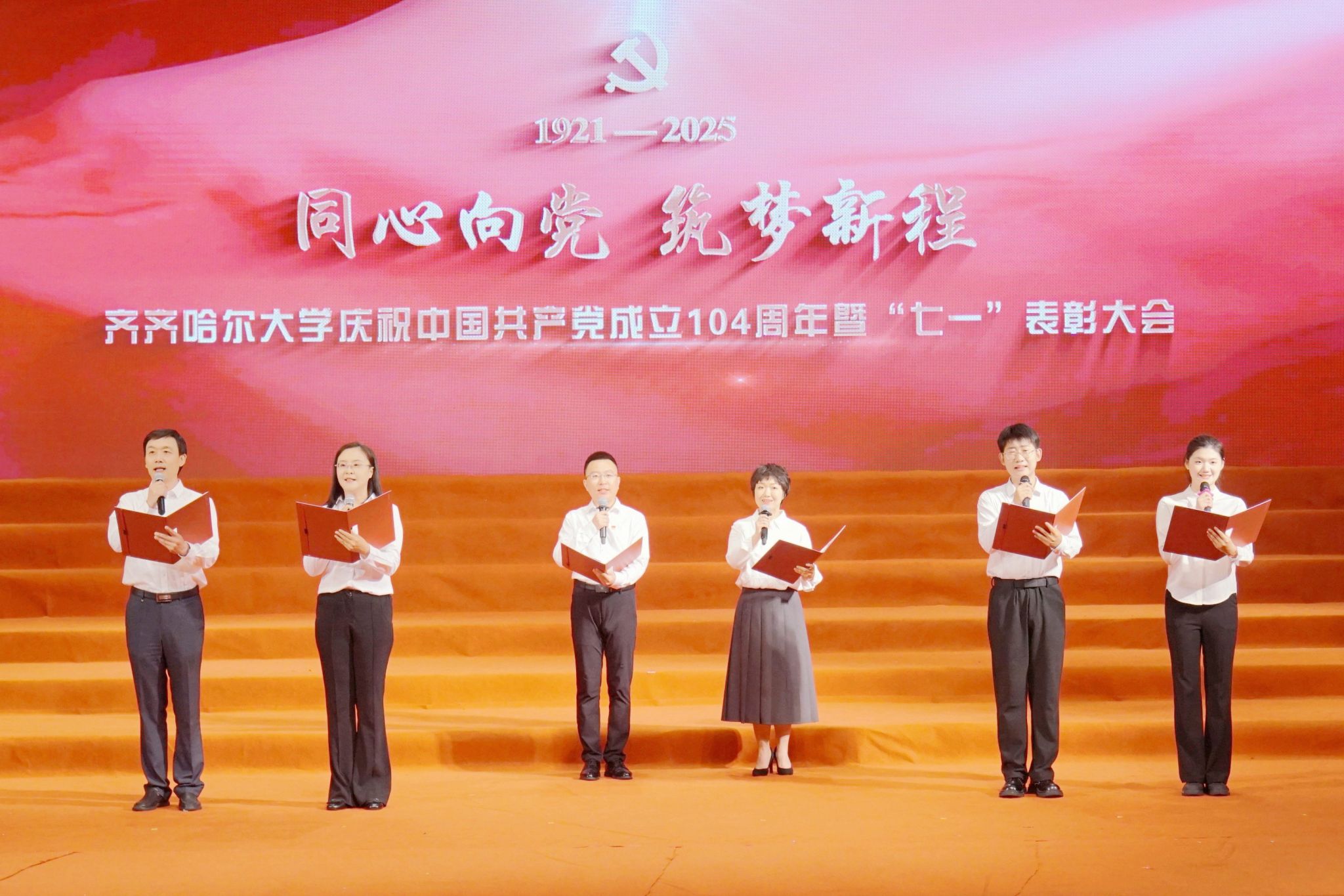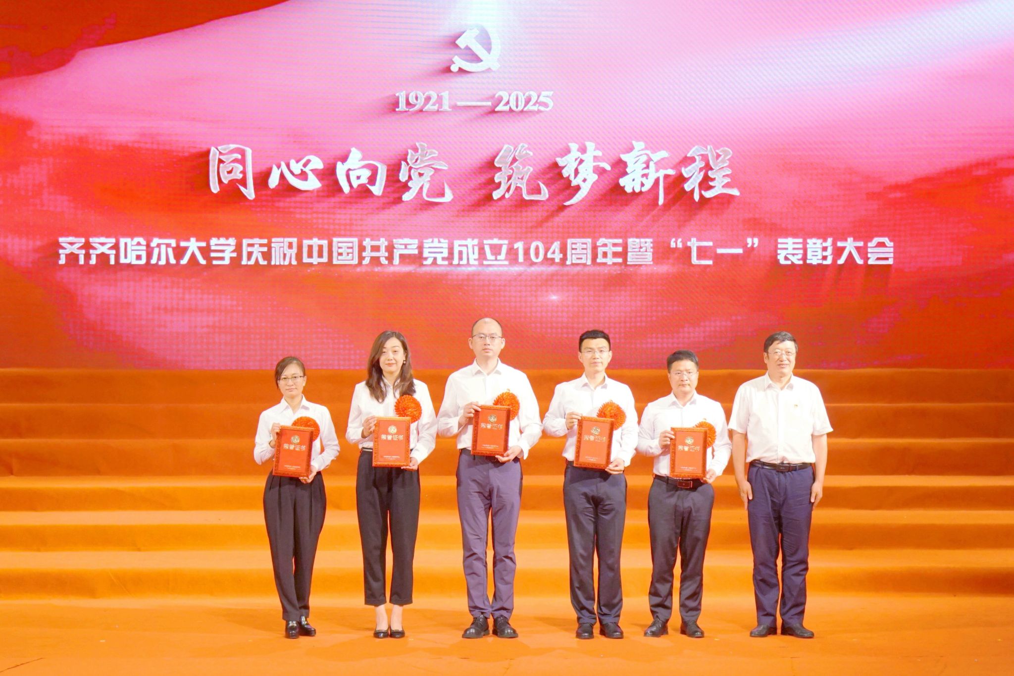 7月1日,齊齊哈爾大學(xué)慶祝中國共產(chǎn)黨成立104周年暨“七一”表彰大會在學(xué)校音樂廳舉行。大會深入學(xué)習(xí)貫徹習(xí)近平總書記關(guān)于黨的建設(shè)的重要思想、關(guān)于黨的自我革命的重要思想,表彰先進(jìn)、樹立榜樣,著力在新的征程上以高質(zhì)量黨建引領(lǐng)學(xué)校各項事業(yè)實現(xiàn)高質(zhì)量發(fā)展。學(xué)校黨委領(lǐng)導(dǎo)班子成員出席大會。