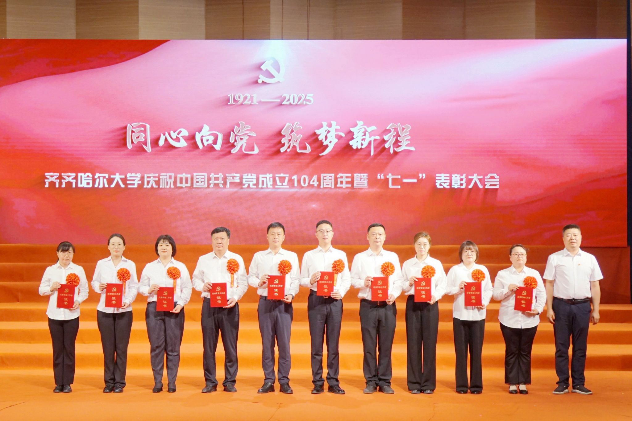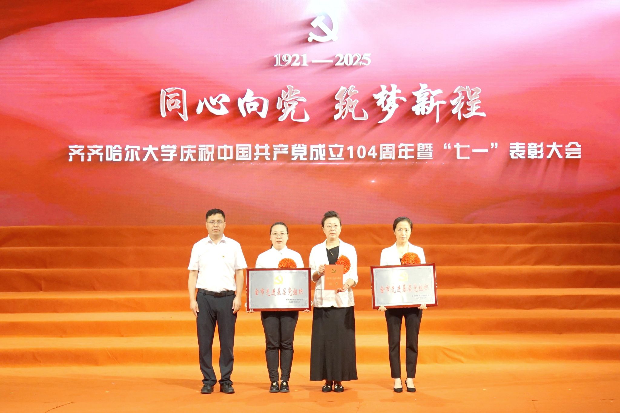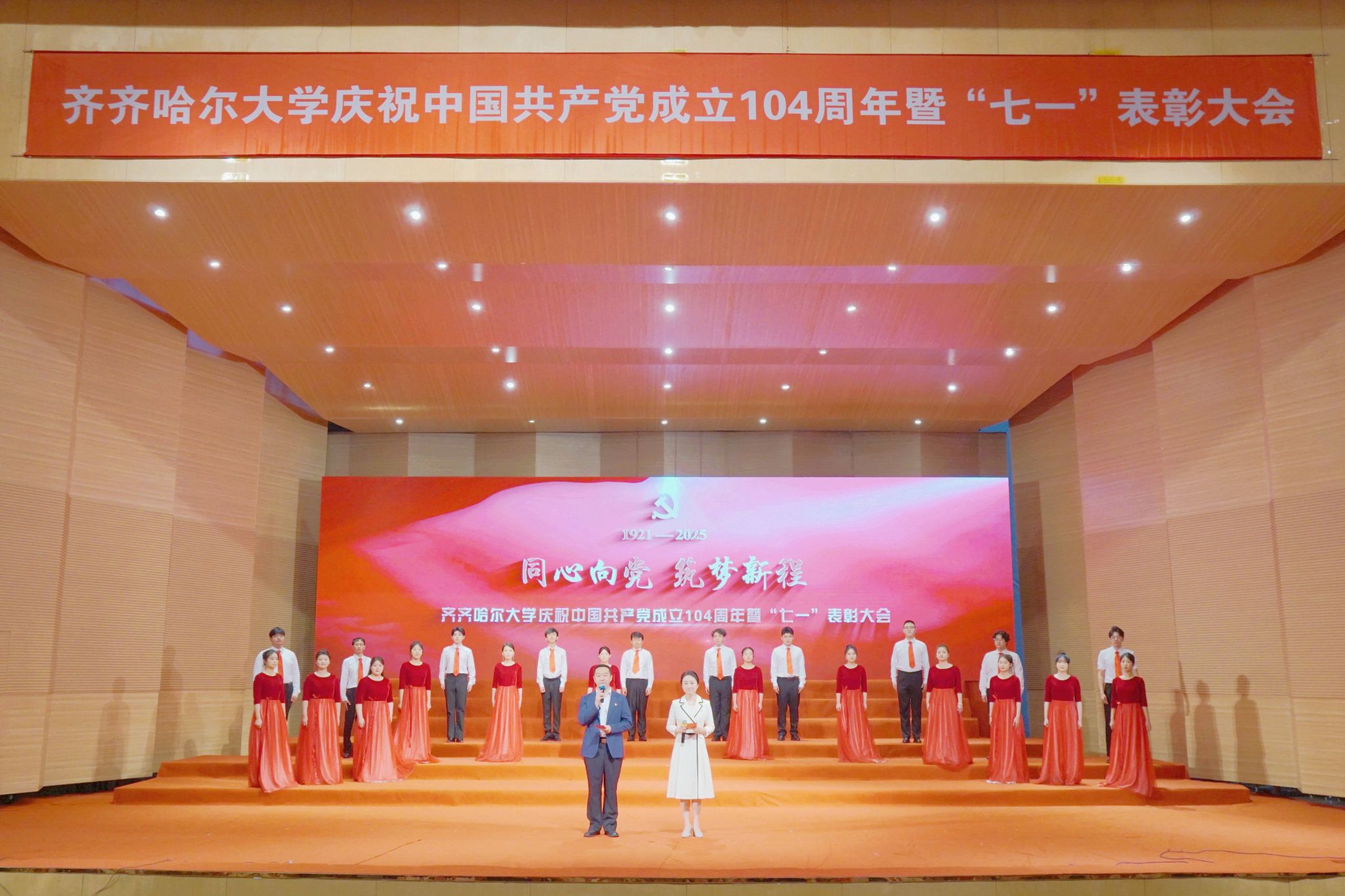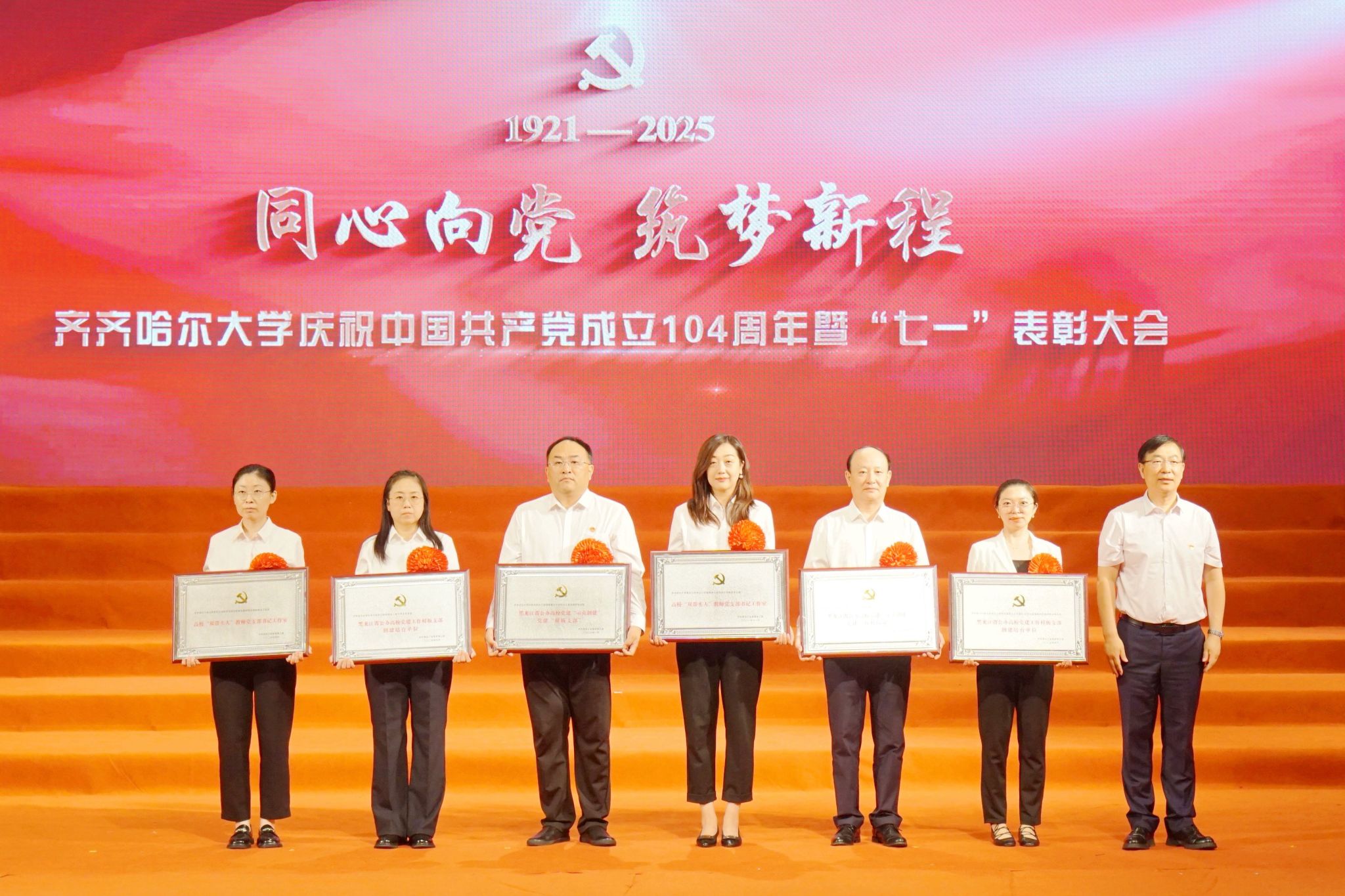 7月1日,齊齊哈爾大學(xué)慶祝中國共產(chǎn)黨成立104周年暨“七一”表彰大會在學(xué)校音樂廳舉行。大會深入學(xué)習(xí)貫徹習(xí)近平總書記關(guān)于黨的建設(shè)的重要思想、關(guān)于黨的自我革命的重要思想,表彰先進(jìn)、樹立榜樣,著力在新的征程上以高質(zhì)量黨建引領(lǐng)學(xué)校各項事業(yè)實現(xiàn)高質(zhì)量發(fā)展。學(xué)校黨委領(lǐng)導(dǎo)班子成員出席大會。