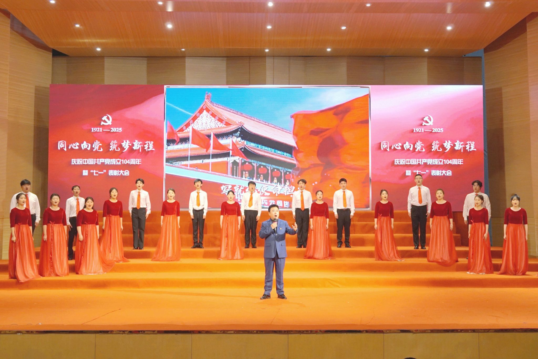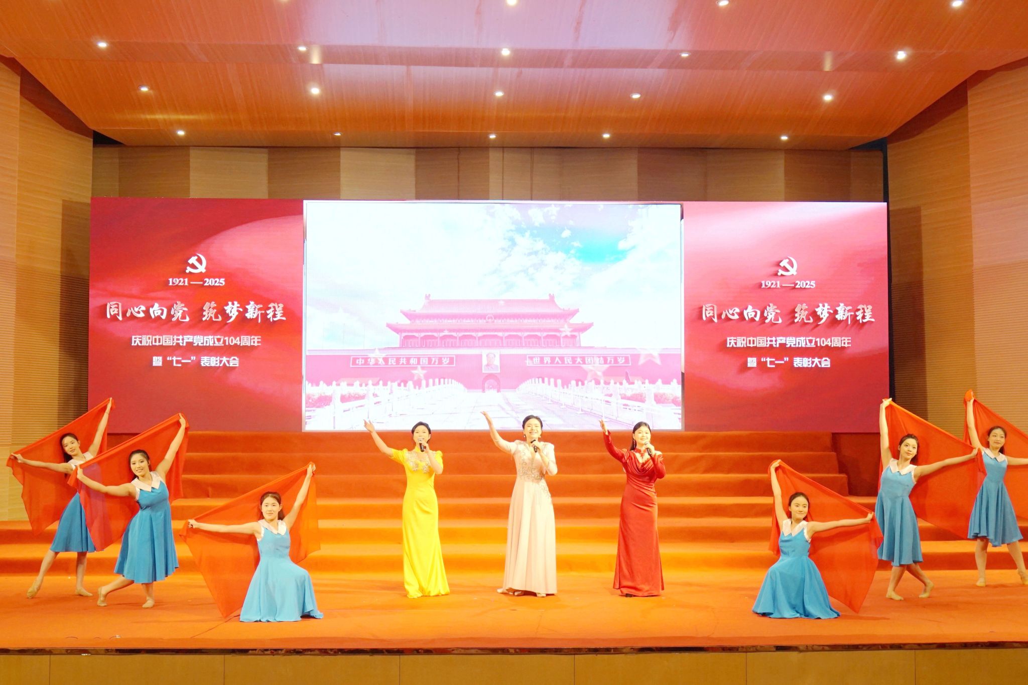 大會在氣勢恢宏的開場曲《黨旗更鮮艷》中拉開帷幕。