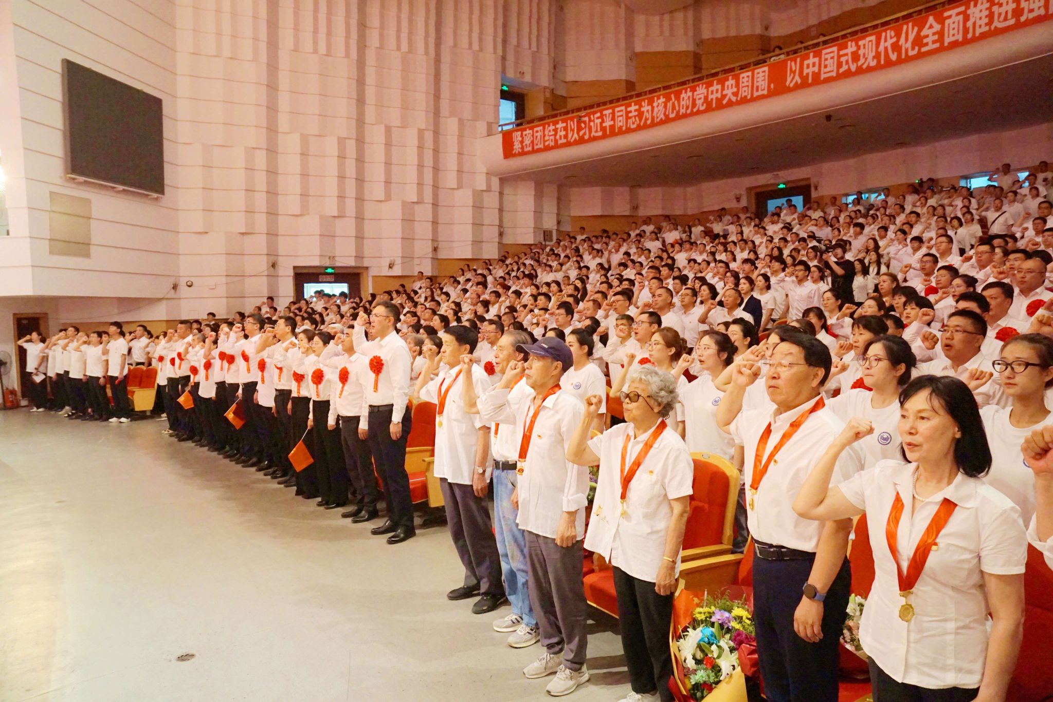 大會在全場師生齊聲高唱《沒有共產(chǎn)黨就沒有新中國》的雄壯歌聲中圓滿落下帷幕。激昂嘹亮的歌聲凝聚起磅礴力量,展現(xiàn)了齊齊哈爾大學(xué)全體師生員工緊密團(tuán)結(jié)在以習(xí)近平同志為核心的黨中央周圍,全面貫徹習(xí)近平新時代中國特色社會主義思想,同心向黨、砥礪前行,奮力譜寫學(xué)校高質(zhì)量發(fā)展新篇章的堅定信心和昂揚(yáng)風(fēng)貌!