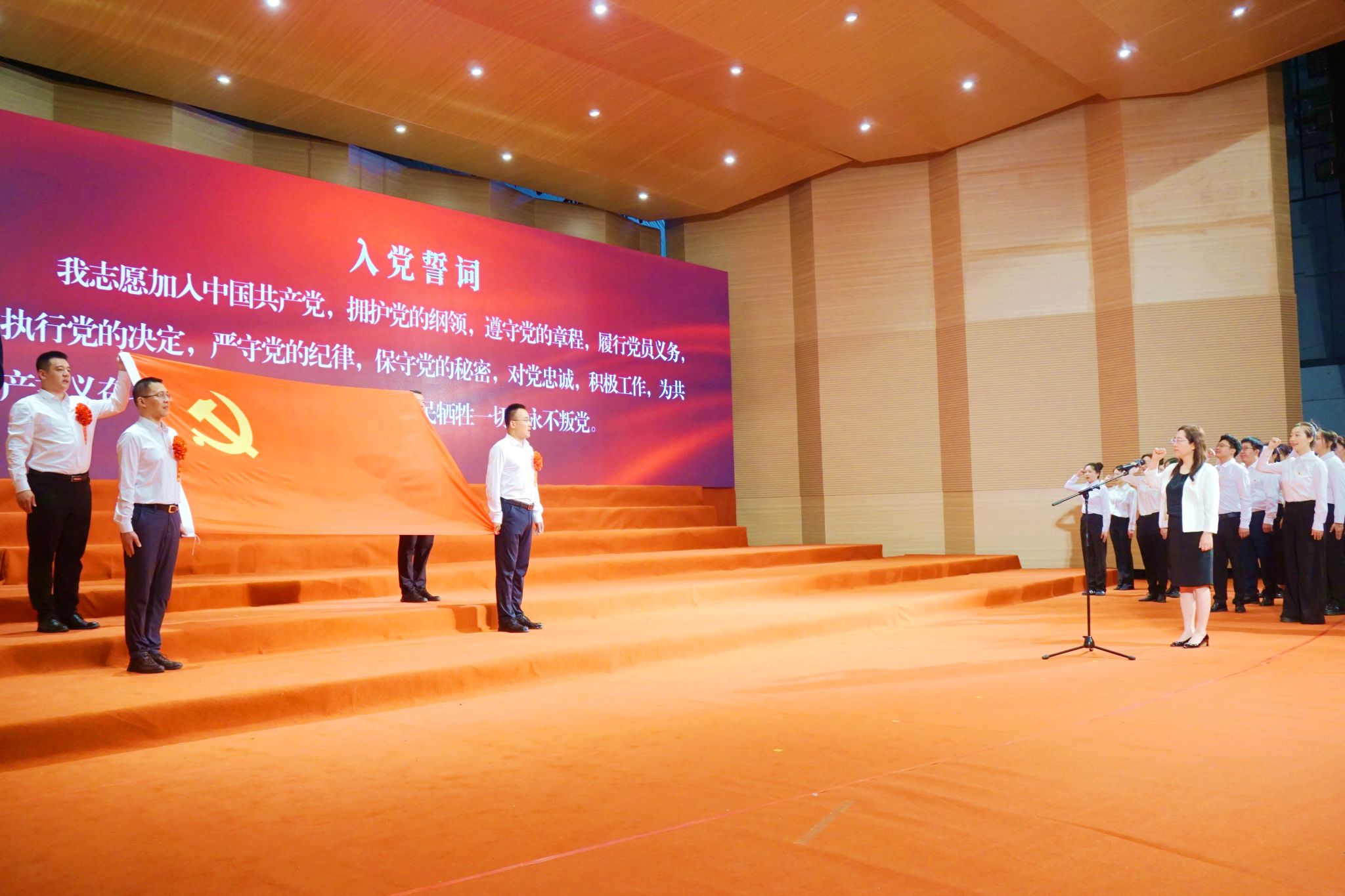 大會舉行新黨員入黨宣誓、老黨員重溫入黨誓詞儀式。在丁宏的領(lǐng)誓下,新黨員面向黨旗莊嚴(yán)宣誓,老黨員重溫入黨誓詞,鏗鏘有力的誓言響徹會場。