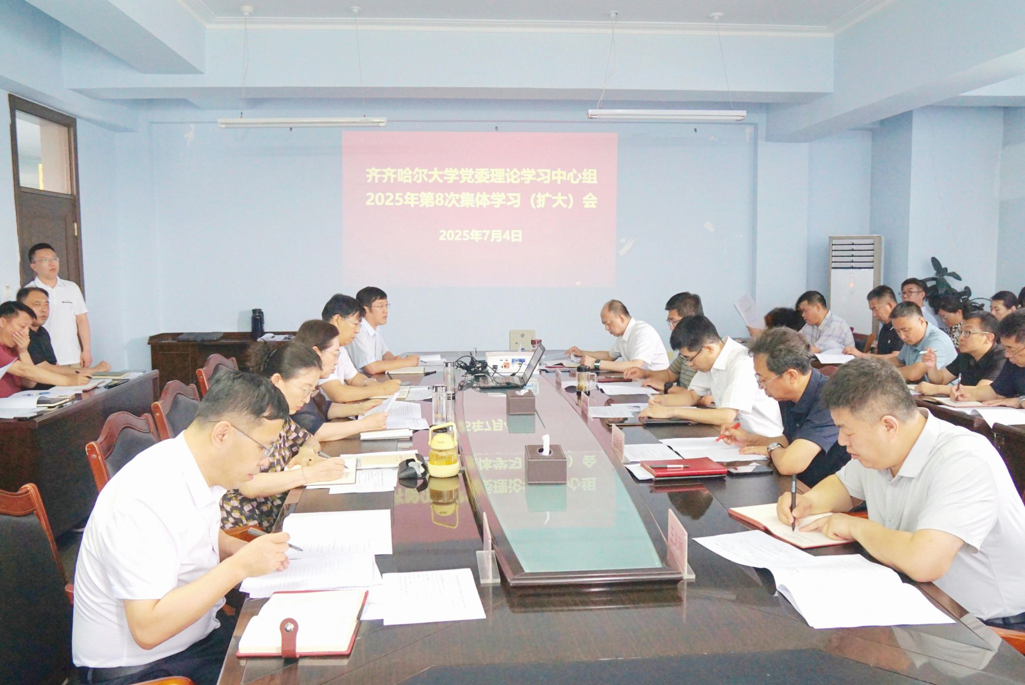 7月4日下午,學(xué)校黨委理論學(xué)習(xí)中心組在辦公樓519會(huì)議室召開2025年第8次集體學(xué)習(xí)(擴(kuò)大)會(huì),深入學(xué)習(xí)領(lǐng)會(huì)習(xí)近平總書記關(guān)于教育的重要論述、關(guān)于深入貫徹中央八項(xiàng)規(guī)定精神學(xué)習(xí)教育的最新重要講話重要指示精神。校黨委書記丁宏主持會(huì)議并講話。