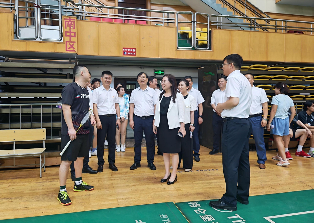 7月14日下午,校領導丁宏、郝文斌、齊宏偉、張文治、馬文輝來到學校體育館,慰問正在緊張備戰(zhàn)的師生們。
