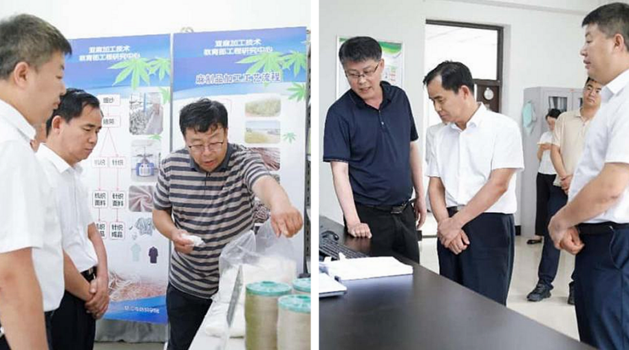 會(huì)后,劉文杰一行實(shí)地參觀了我?!昂畢^(qū)麻及制品教育部工程研究中心”及“工業(yè)大麻國(guó)家市場(chǎng)監(jiān)管總局技術(shù)創(chuàng)新中心”,直觀了解學(xué)校在漢麻和工業(yè)大麻領(lǐng)域的研發(fā)實(shí)力與轉(zhuǎn)化潛力。