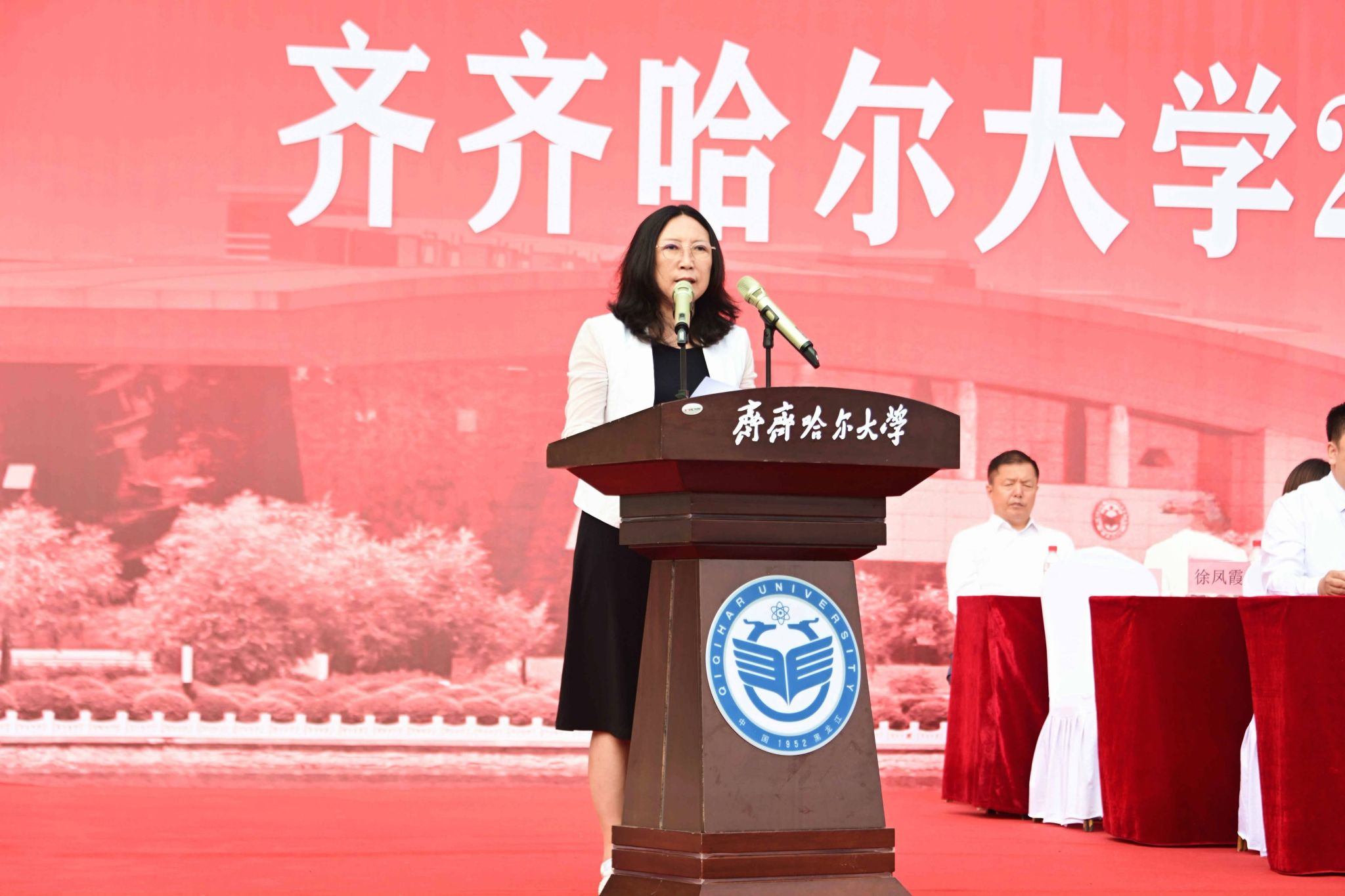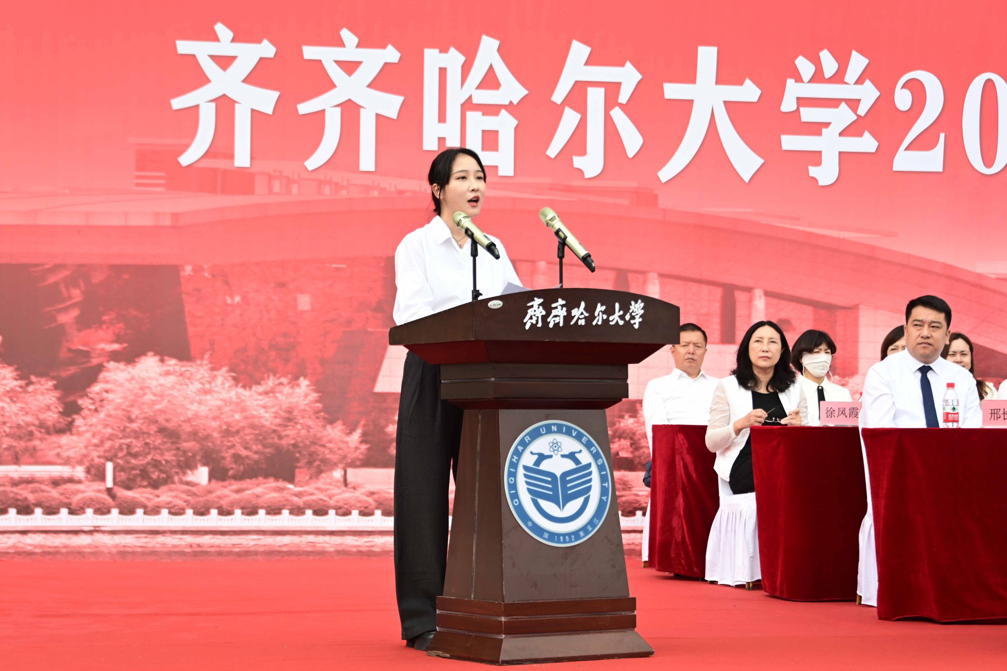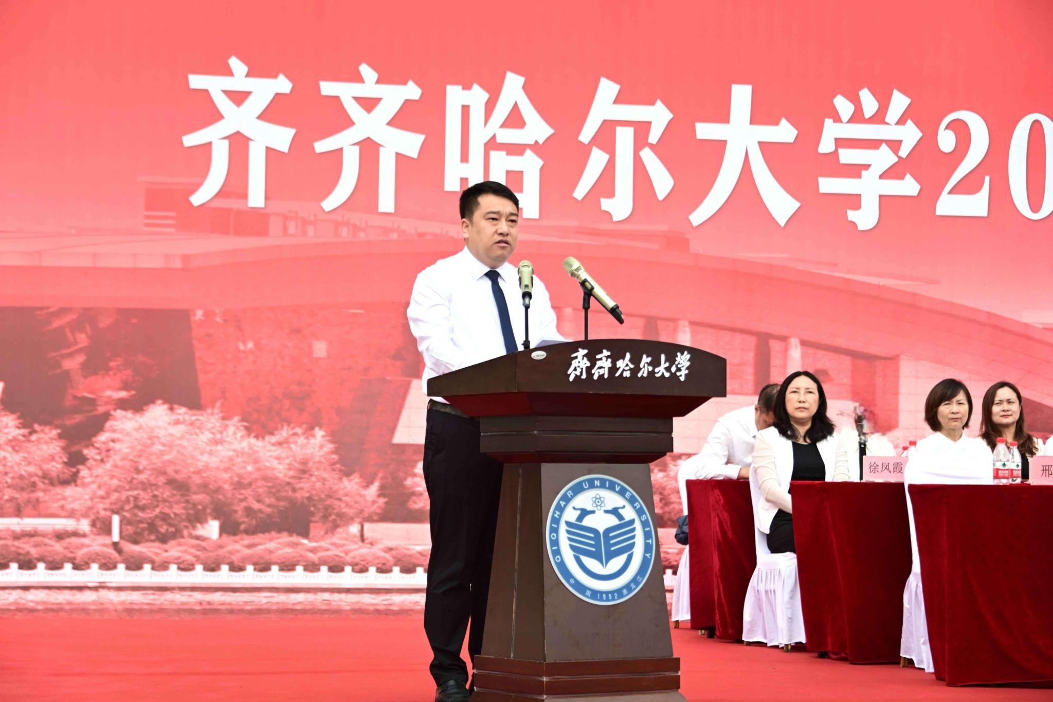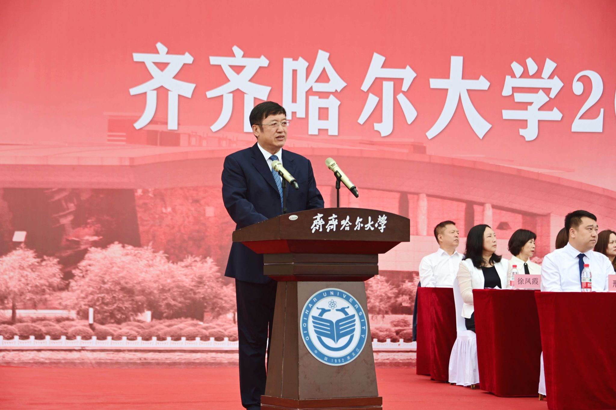 9月1日,齊齊哈爾大學(xué)2025級(jí)新生開學(xué)典禮暨軍訓(xùn)動(dòng)員大會(huì)在西區(qū)體育場(chǎng)舉行,學(xué)校全體領(lǐng)導(dǎo)班子成員、武警齊齊哈爾支隊(duì)上校支隊(duì)長(zhǎng)劉洋出席典禮,優(yōu)秀畢業(yè)生代表、學(xué)校軍訓(xùn)團(tuán)成員、各學(xué)院黨政負(fù)責(zé)人以及7000余名新生參加典禮。黨委副書記張文治主持典禮。
