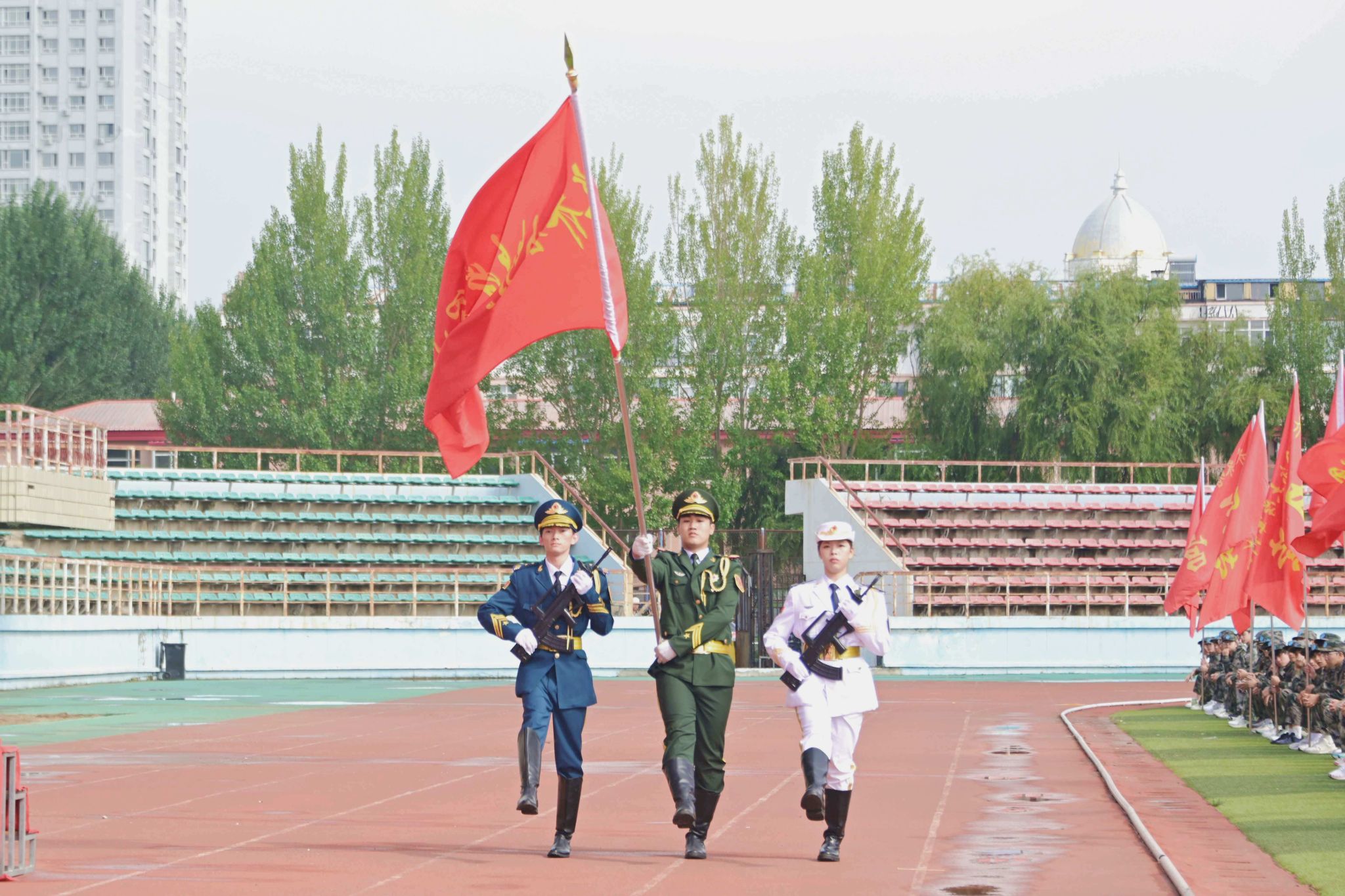 上午9時(shí),典禮在莊嚴(yán)的升旗儀式中拉開帷幕。