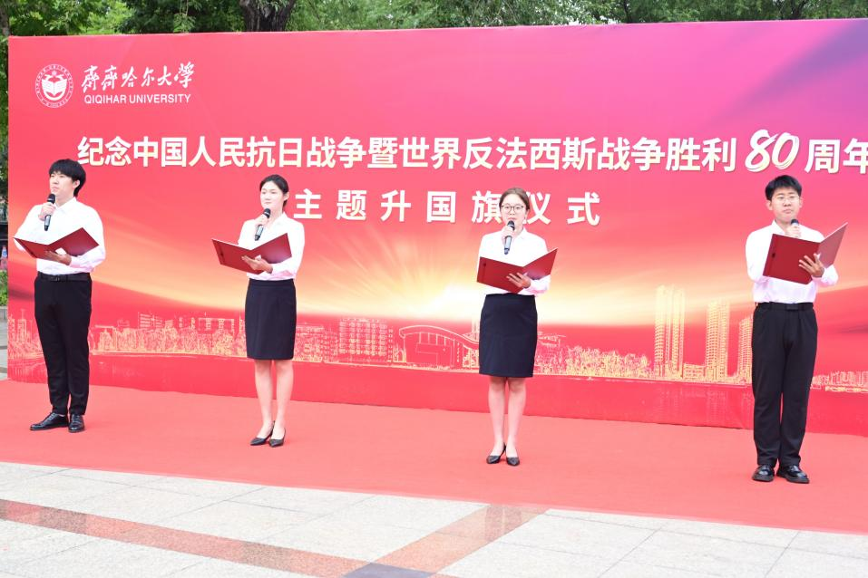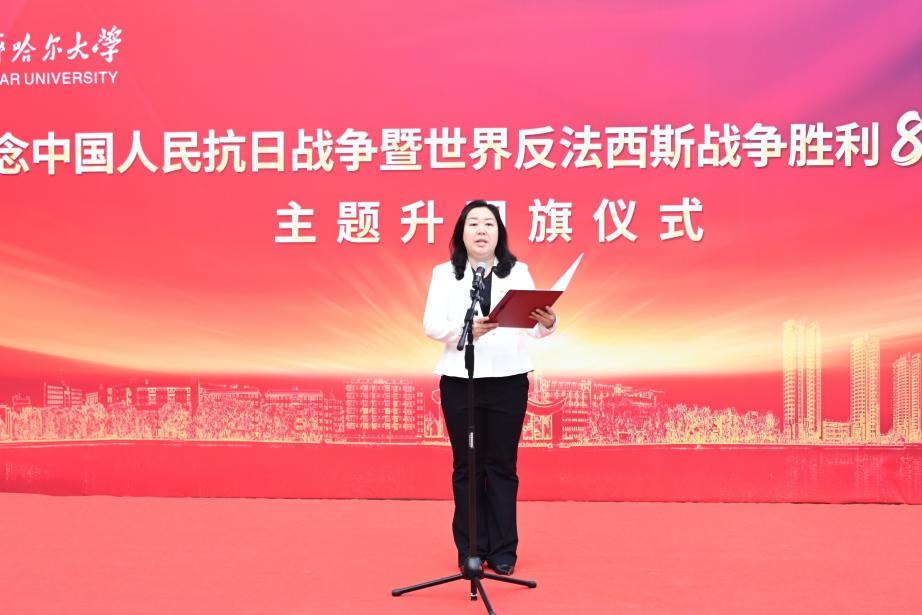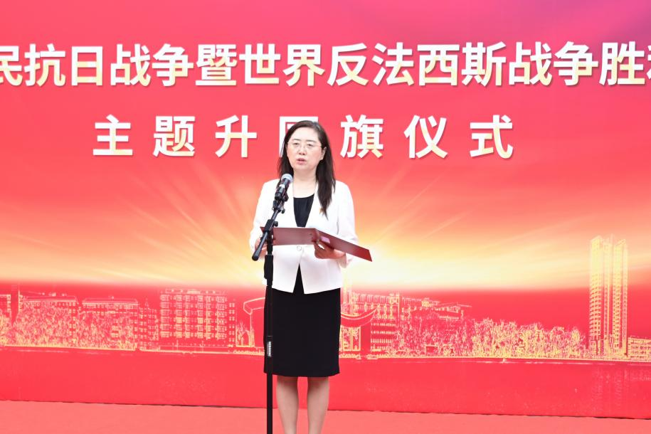 校黨委書記丁宏以“銘記歷史守初心 薪火相傳啟新程”為題,主講“國旗下的開學(xué)第一課”。她指出,五星紅旗是先烈熱血染就的信仰火炬,昭示著以天下興亡匹夫有責(zé)的愛國情懷、視死如歸寧死不屈的民族氣節(jié)、不畏強(qiáng)暴血戰(zhàn)到底的英雄氣概、百折不撓、堅(jiān)忍不拔的必勝信念為核心的偉大抗戰(zhàn)精神,這份精神是激勵(lì)我們前行的永恒動(dòng)力。她強(qiáng)調(diào),齊大73載辦學(xué)歷程鐫刻著從“艱苦奮斗”到“守正創(chuàng)新”、從“奉獻(xiàn)邊疆”到“引領(lǐng)未來”的紅色基因,這是青年成長的堅(jiān)實(shí)根基。她對(duì)廣大齊大學(xué)子提出三點(diǎn)期望:一是當(dāng)以根鑄魂,永葆赤子之心。從校史中延安精神鑄就的辦學(xué)底色汲取力量,傳承“越是艱險(xiǎn)越向前”的堅(jiān)韌意志。二是當(dāng)以行踐諾,深植家國情懷。學(xué)習(xí)身邊榜樣,將愛國情懷轉(zhuǎn)化為“關(guān)鍵時(shí)刻站得出、平凡崗位干出彩”的實(shí)際行動(dòng),用青春奉獻(xiàn)告慰先烈,踐行“強(qiáng)國有我”誓言。三是當(dāng)以責(zé)聚力,共赴時(shí)代之約。把握學(xué)校迎接教育部本科教育教學(xué)審核評(píng)估、建設(shè)國內(nèi)一流應(yīng)用型綜合性大學(xué)的發(fā)展關(guān)鍵期,樹牢“校榮我榮”意識(shí),主動(dòng)投身教學(xué)科研、產(chǎn)教融合、校園建設(shè),在班級(jí)、社團(tuán)、實(shí)踐中勇當(dāng)先鋒,讓個(gè)人成長與學(xué)校發(fā)展、民族復(fù)興同頻共振。和平是先輩用鮮血換來的尊嚴(yán),紀(jì)念歷史貴在奮進(jìn)。她號(hào)召,全體師生要讓愛國主義的火炬照亮新征程,以實(shí)際行動(dòng)奮力譜寫無愧于時(shí)代、無愧于人民、無愧于歷史的齊大新篇章!