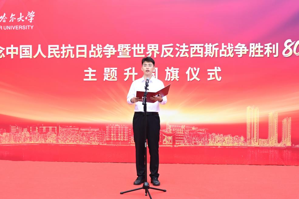 9月3日,學(xué)校在中區(qū)廣場舉行紀(jì)念中國人民抗日戰(zhàn)爭暨世界反法西斯戰(zhàn)爭勝利80周年主題升國旗儀式。學(xué)校領(lǐng)導(dǎo)班子成員,各職能部門負(fù)責(zé)同志,各學(xué)院師生代表參加了此次活動(dòng)。