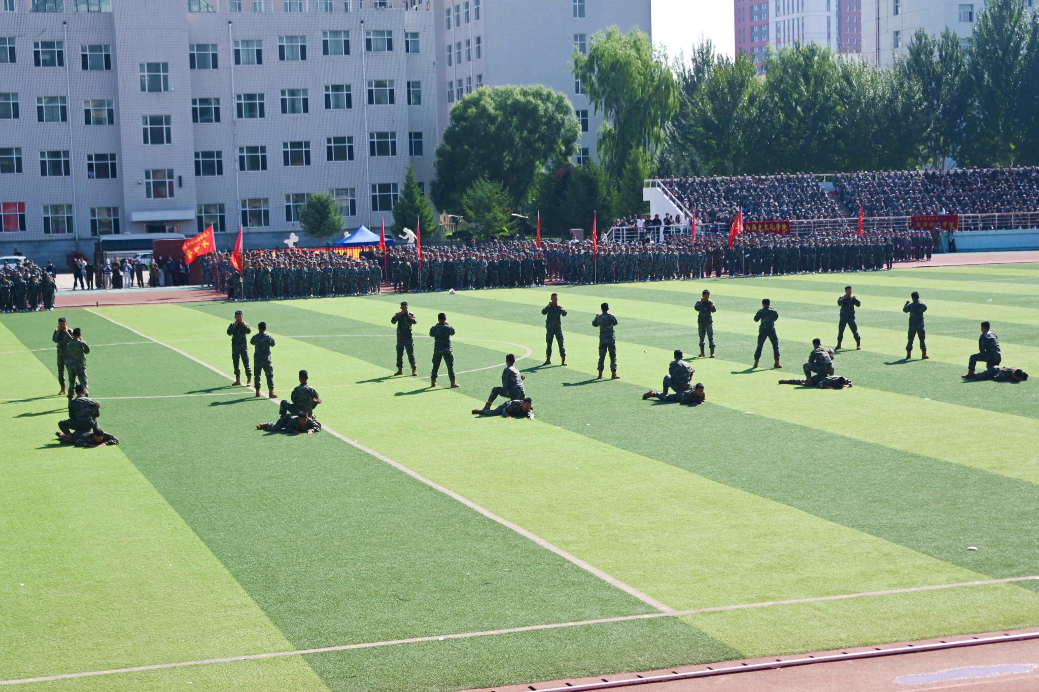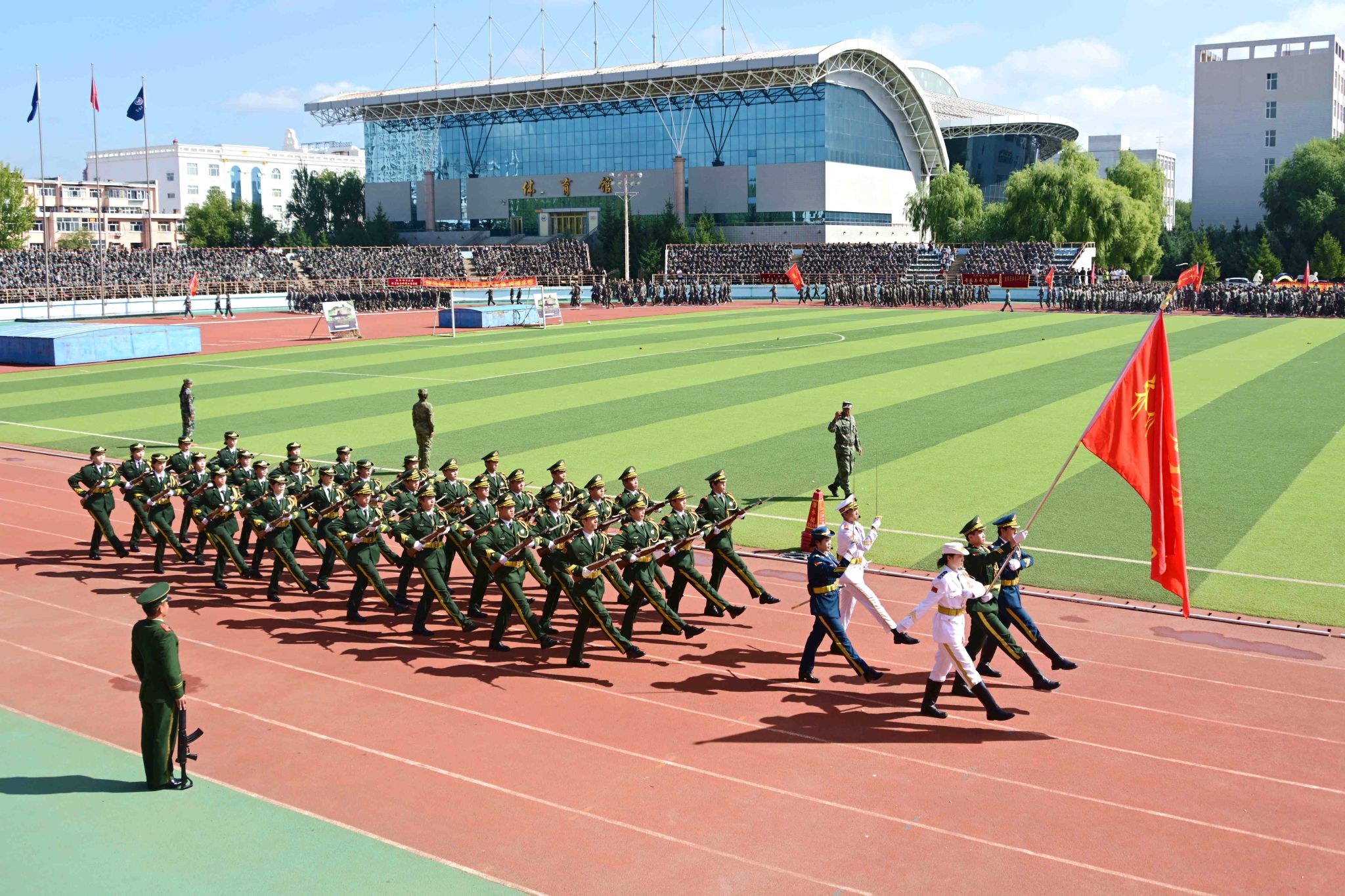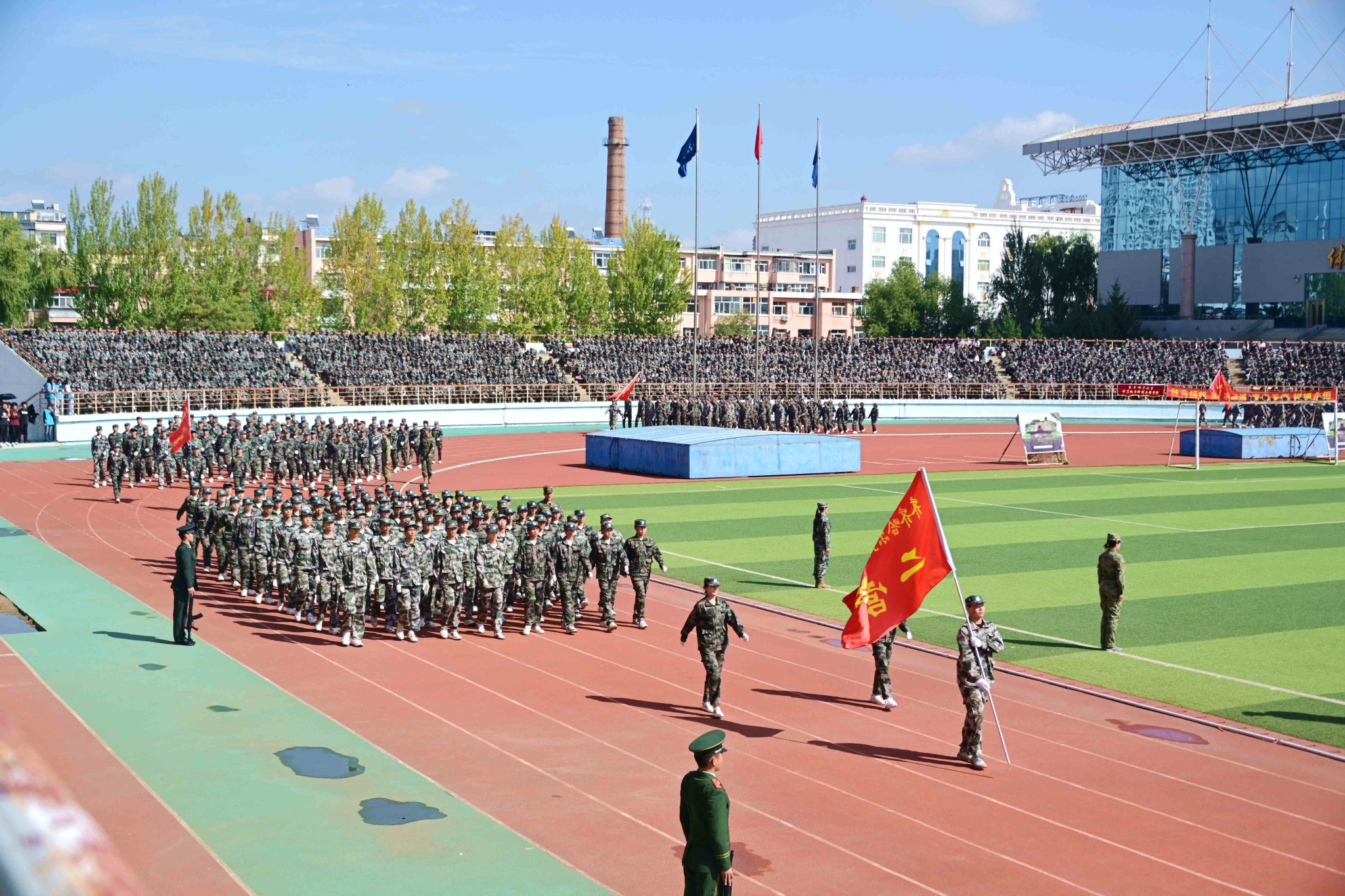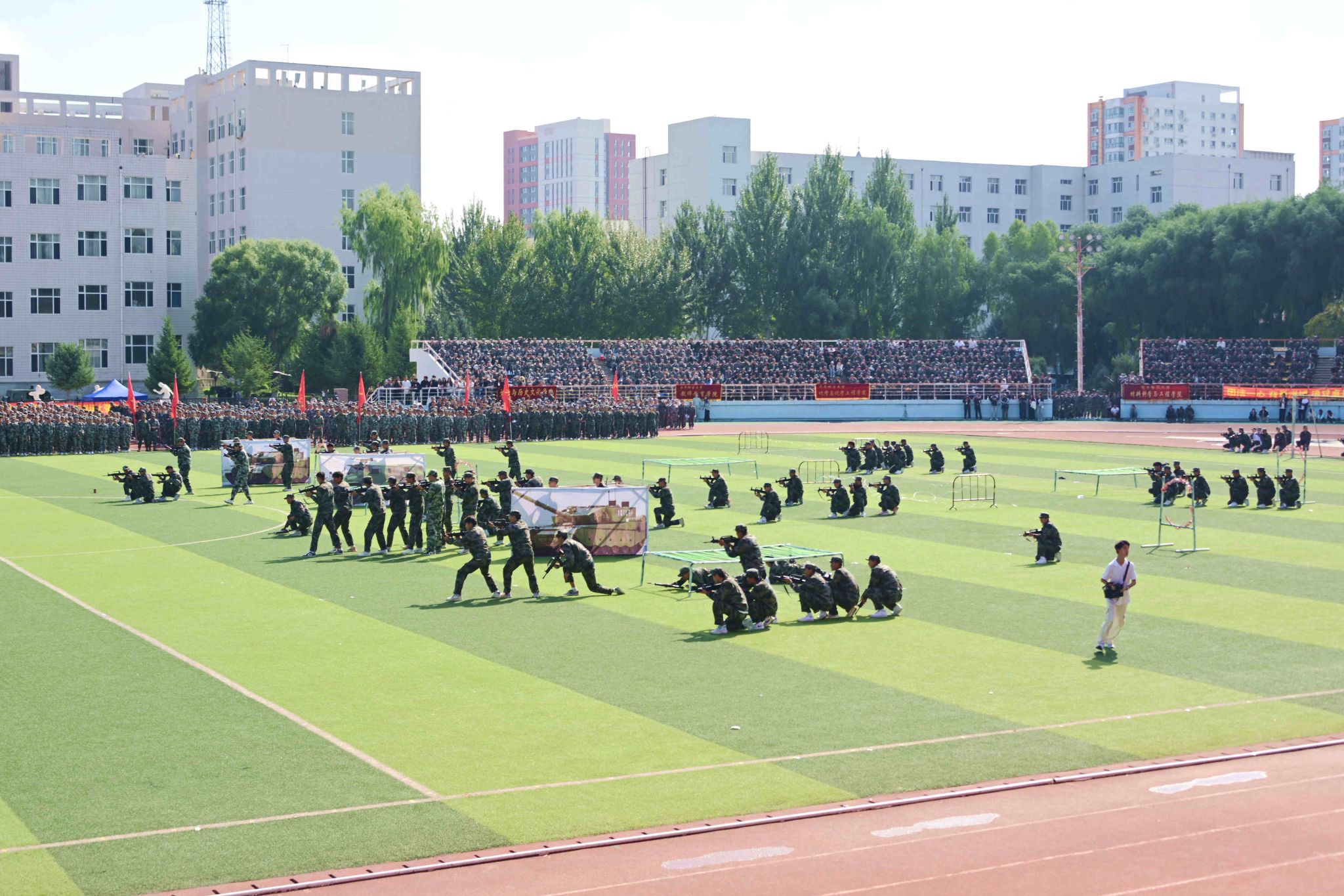 9月14日,學(xué)校2025級(jí)學(xué)生軍訓(xùn)成果展示暨總結(jié)表彰大會(huì)在西區(qū)體育場(chǎng)舉行。副校長(zhǎng)、軍訓(xùn)團(tuán)政委徐廣洲,武警齊齊哈爾支隊(duì)少校副參謀長(zhǎng)劉操出席大會(huì),校武裝部部長(zhǎng)、軍訓(xùn)團(tuán)參謀長(zhǎng)于佳賓主持大會(huì)。