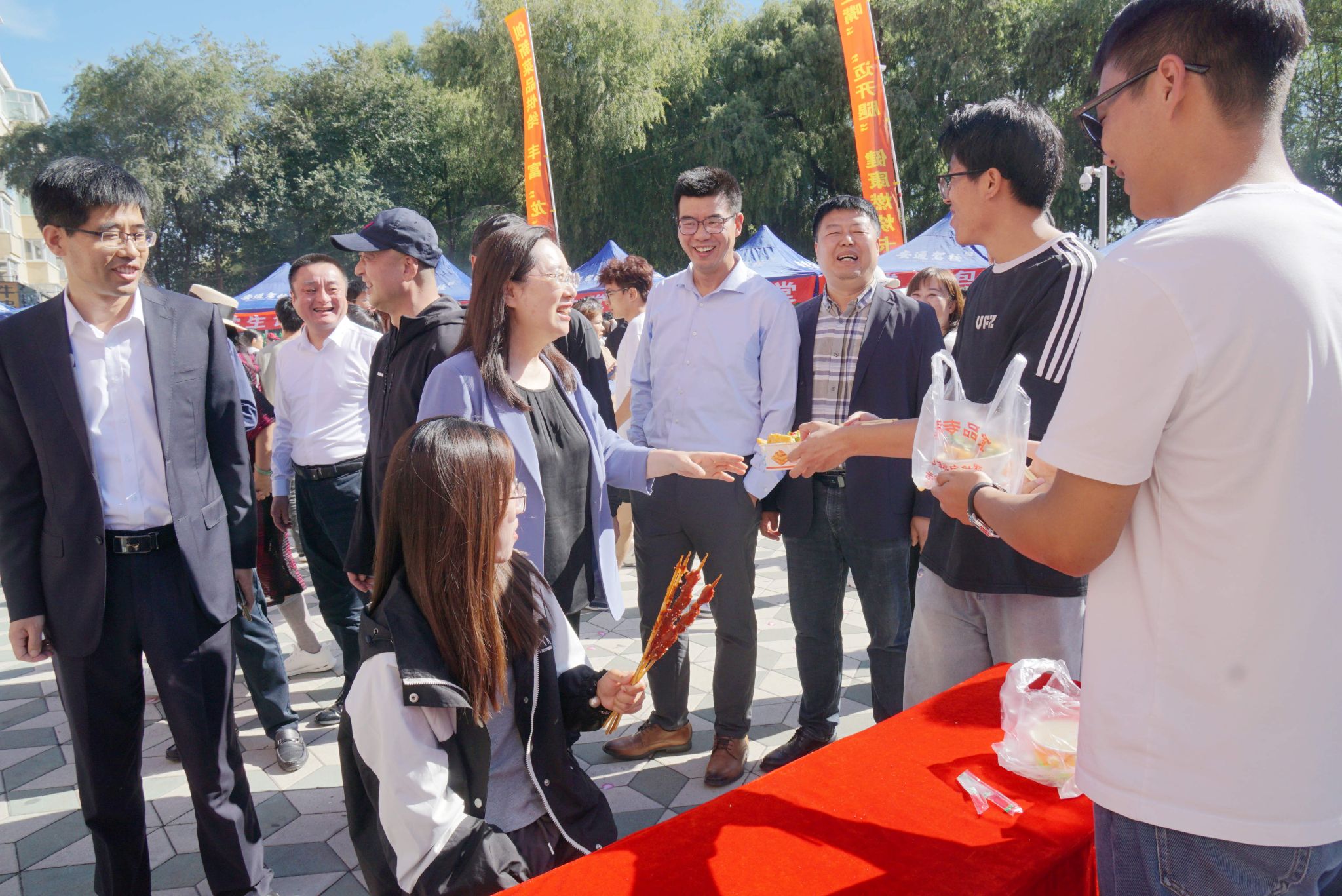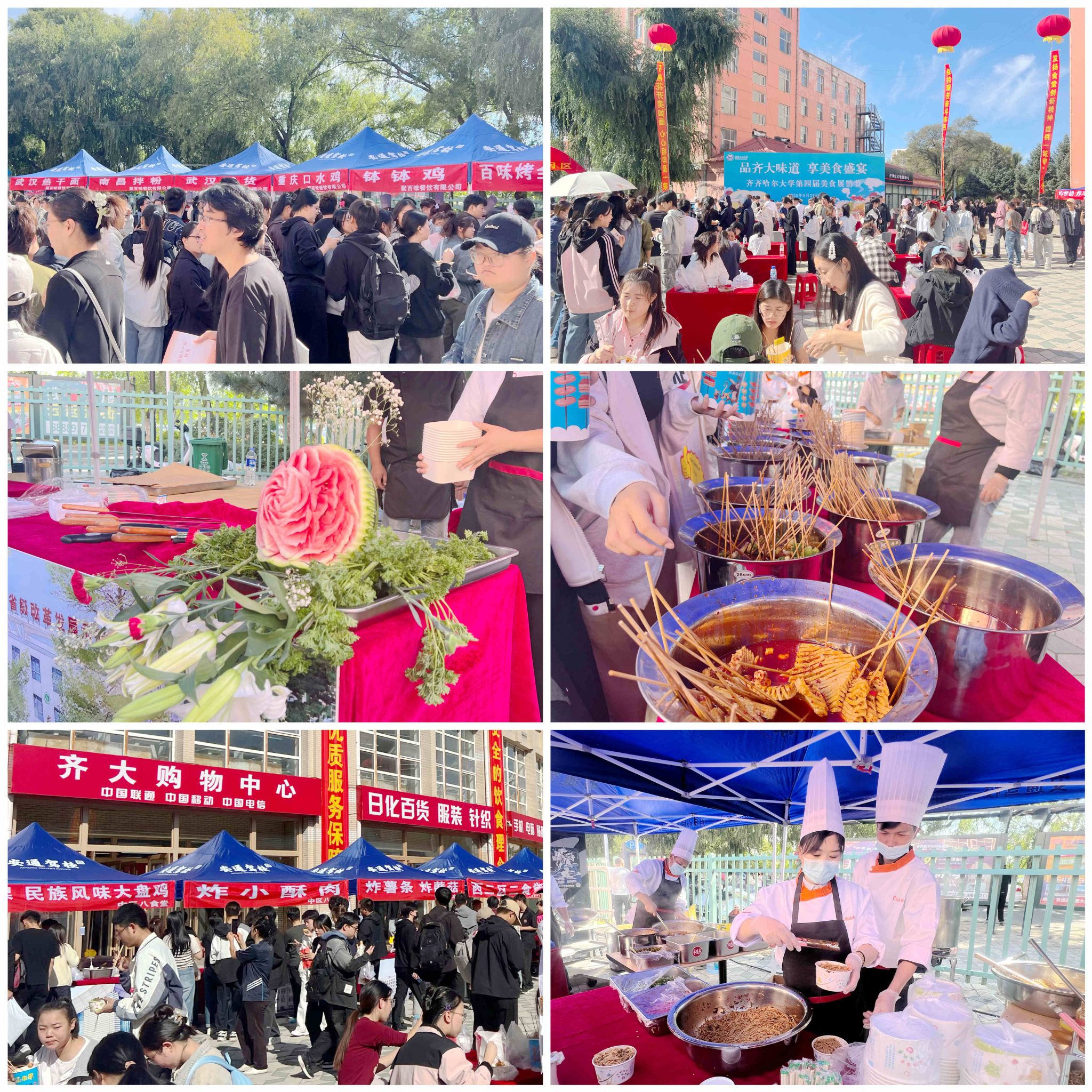 九月齊大,秋高氣爽,景色宜人。在國慶、中秋雙節(jié)來臨之際,為營造歡樂祥和的校園文化氛圍,豐富師生校園生活,為廣大師生提供優(yōu)質(zhì)餐飲服務(wù),9月27日上午10:30學(xué)校在中區(qū)購物中心南廣場舉辦第四屆校園美食展銷節(jié)。本次活動以“品齊大味道,享美食盛宴”為主題,由后勤管理處牽頭,聯(lián)合多部門共同策劃組織,吸引了眾多師生踴躍參與。