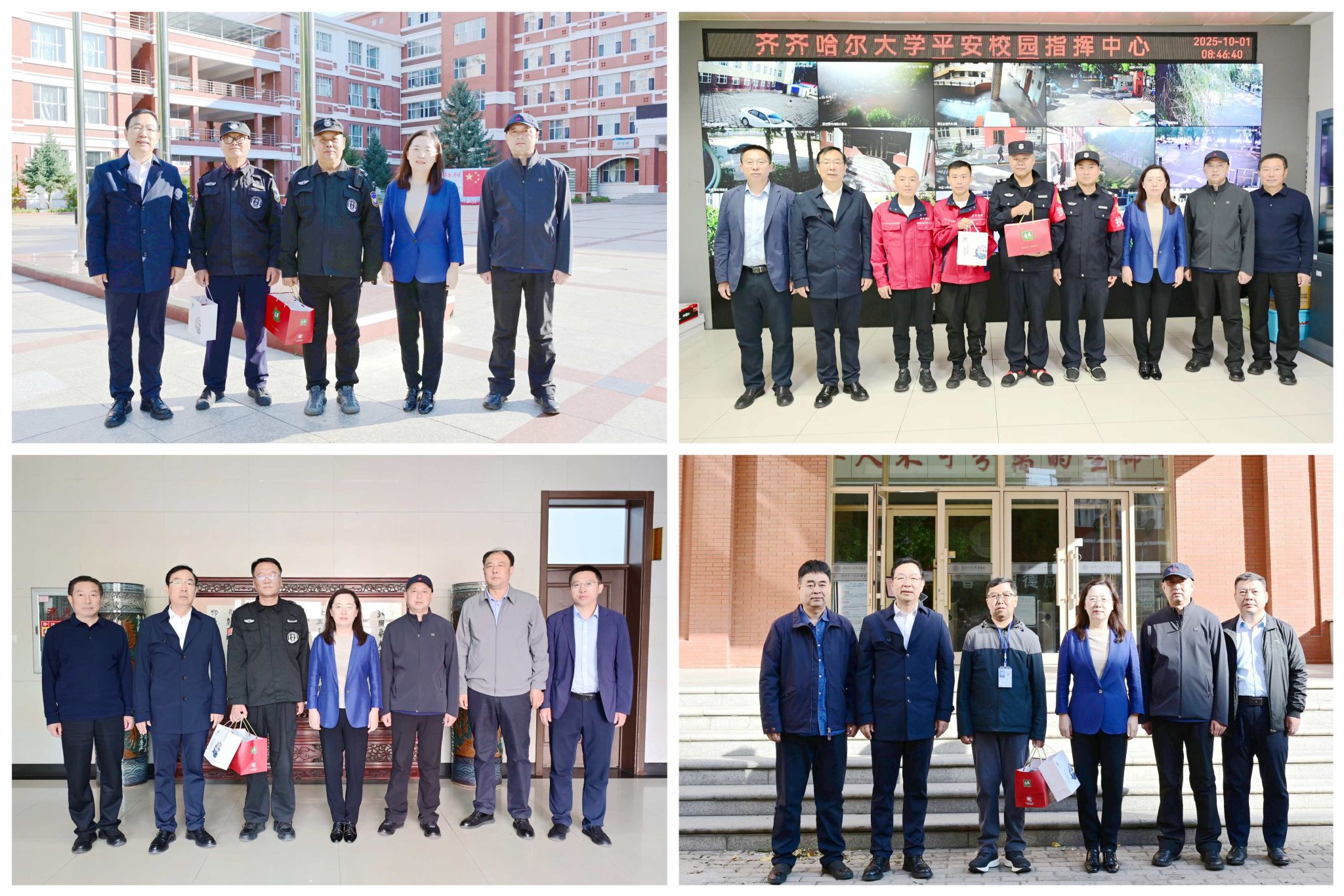 10月1日上午,在國(guó)慶節(jié)、中秋節(jié)來(lái)臨之際,校黨委書記丁宏,校長(zhǎng)、黨委副書記郝文斌,副校長(zhǎng)、黨委常委杜海軍帶領(lǐng)相關(guān)職能部門負(fù)責(zé)人,深入校園多個(gè)關(guān)鍵區(qū)域,親切看望慰問(wèn)國(guó)慶節(jié)當(dāng)天值班值守的一線工作人員,代表學(xué)校向他們致以節(jié)日的誠(chéng)摯問(wèn)候和崇高敬意,并送上國(guó)慶、中秋雙節(jié)的美好祝福。
