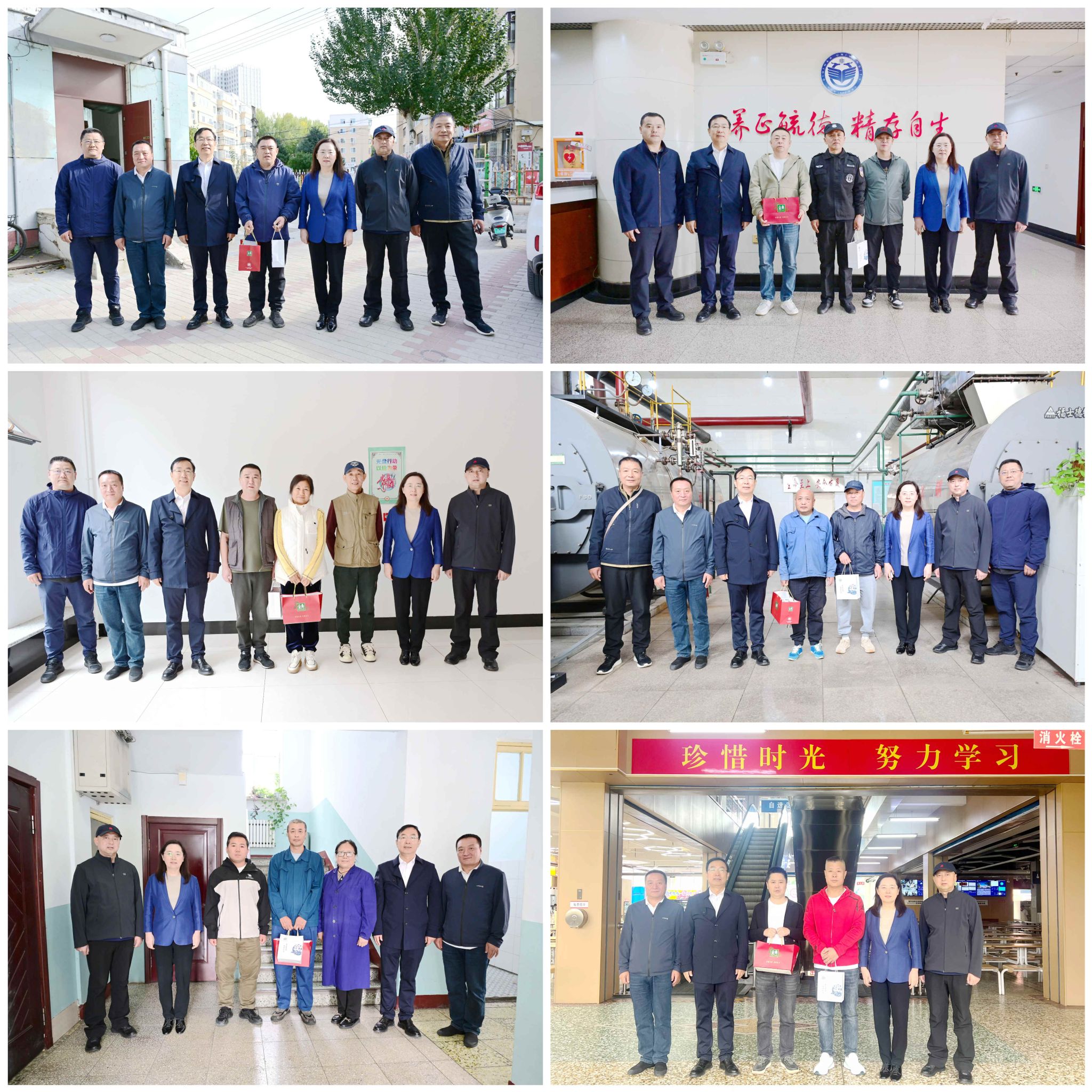 校領(lǐng)導(dǎo)一行先后來(lái)到中區(qū)大門衛(wèi)、110服務(wù)中心、機(jī)關(guān)樓門衛(wèi)、校園總值班室、圖書館、中區(qū)泵房、購(gòu)物中心、體育館、西二區(qū)學(xué)生浴池、東區(qū)變電所、東區(qū)二食堂等地。“大家辛苦了!”“祝大家節(jié)日快樂!”每到一處,校領(lǐng)導(dǎo)都與值班值守人員親切握手、熱情交談,深入了解節(jié)日期間的工作安排、值班情況以及生活保障,并送上精心準(zhǔn)備的慰問(wèn)品,對(duì)他們?cè)诠?jié)假日期間的恪盡職守、無(wú)私奉獻(xiàn)表示衷心感謝。