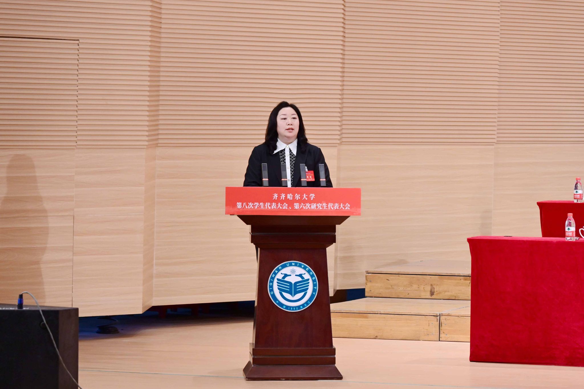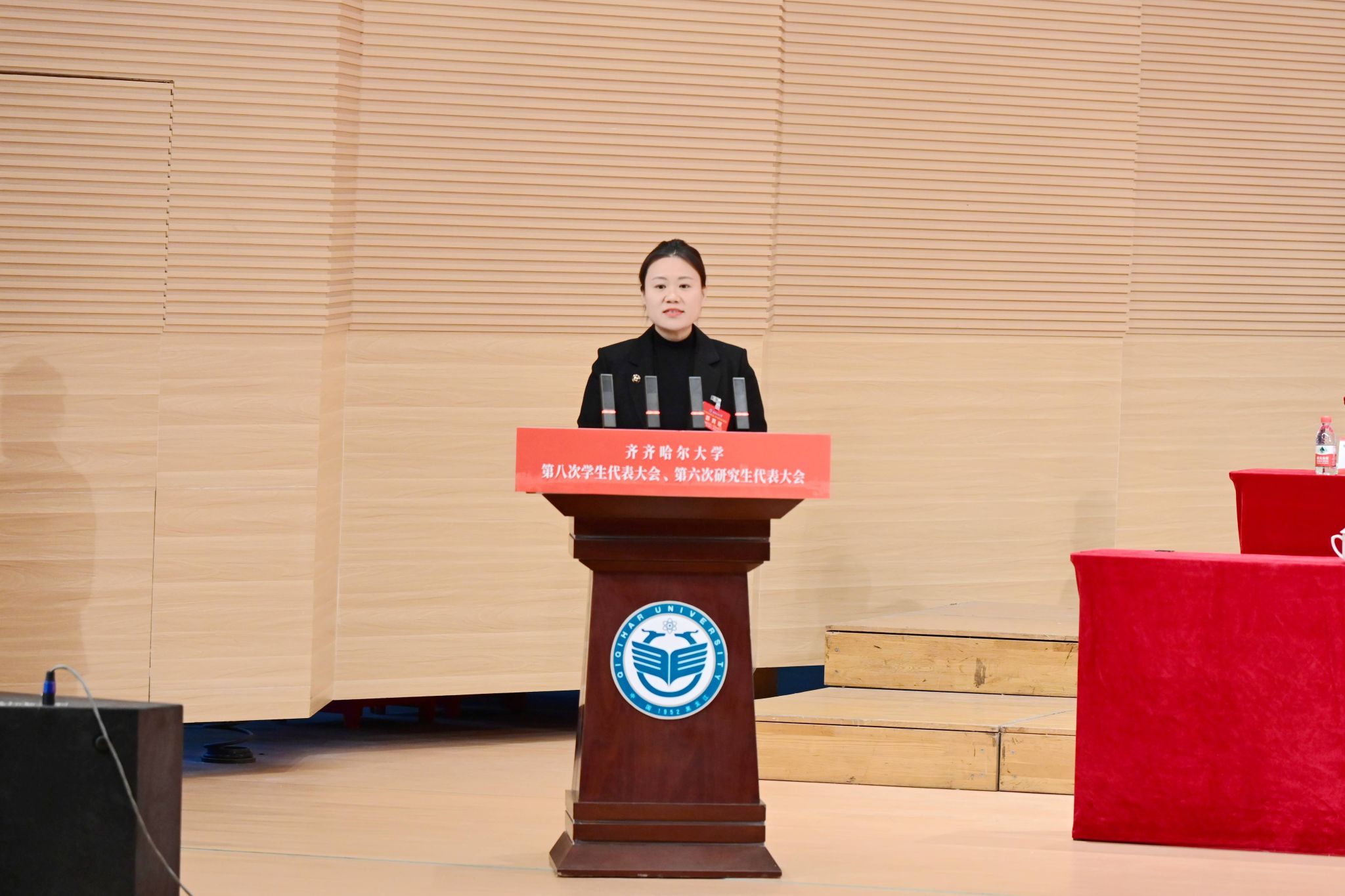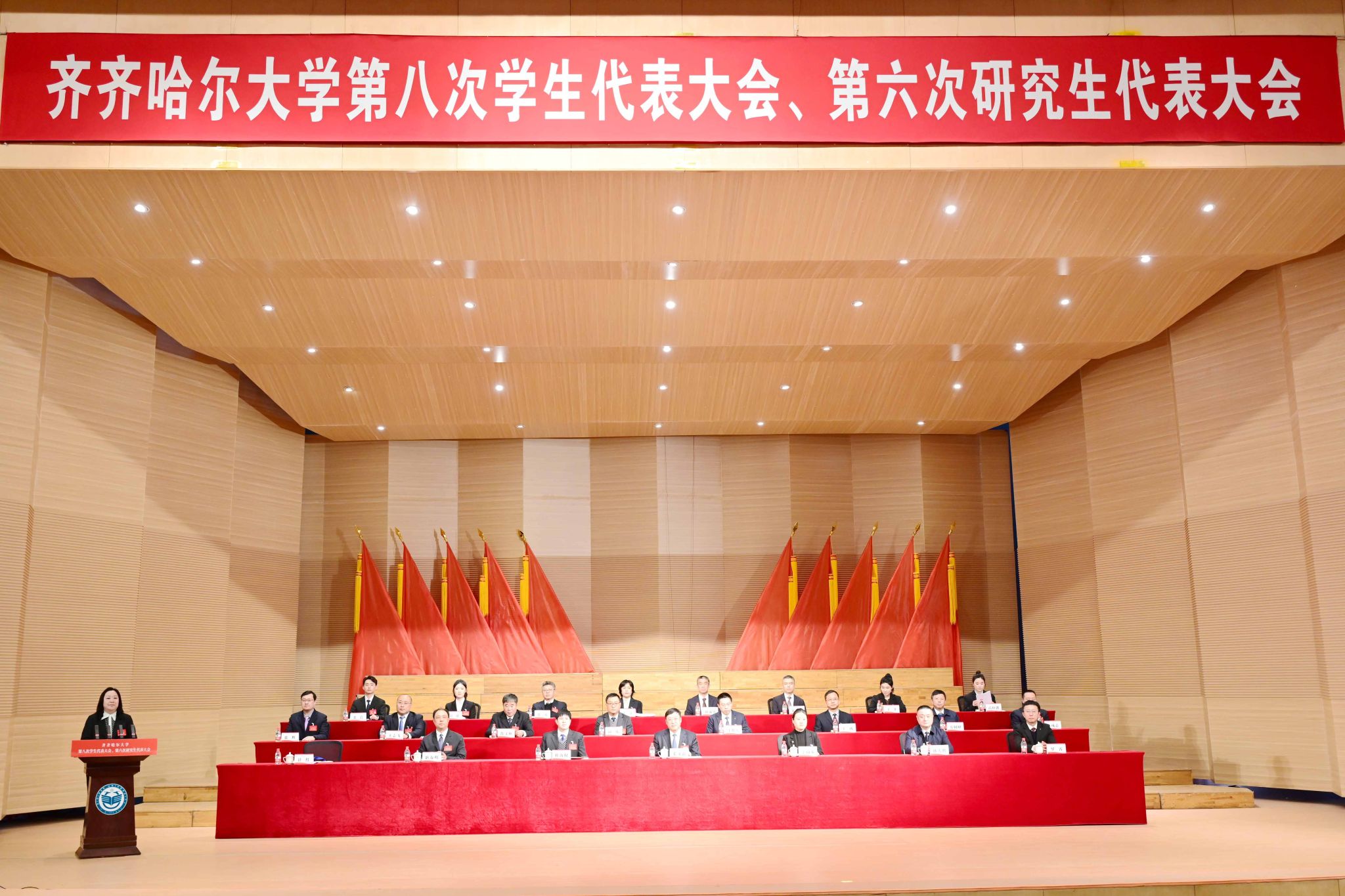 青春盛會(huì)擔(dān)使命,踔厲奮發(fā)譜新篇。11月26日,我校第八次學(xué)生代表大會(huì)、第六次研究生代表大會(huì)在音樂(lè)廳召開(kāi)。校黨委副書(shū)記張文治,黨委常委、宣傳部部長(zhǎng)杜海權(quán),黨委常委、組織部部長(zhǎng)孫大鵬出席會(huì)議。共青團(tuán)齊齊哈爾市委員會(huì)副書(shū)記李南希應(yīng)邀出席會(huì)議并致辭。學(xué)校學(xué)生工作指導(dǎo)委員會(huì)主要成員單位負(fù)責(zé)同志、各學(xué)院主管學(xué)生工作領(lǐng)導(dǎo)及團(tuán)委書(shū)記,266名本科生代表、93名研究生代表參會(huì)。會(huì)議由校團(tuán)委書(shū)記計(jì)紅主持。