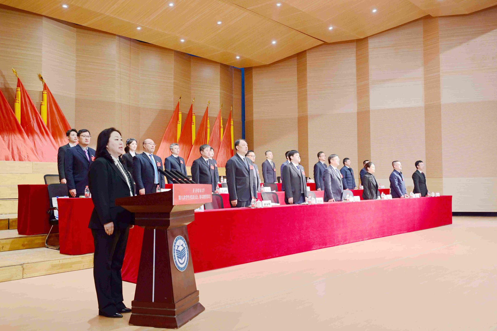 14時(shí),大會(huì)在雄壯的國(guó)歌聲中正式開(kāi)幕。校學(xué)生會(huì)執(zhí)行主席張巖宣讀了黑龍江省學(xué)生聯(lián)合會(huì)賀信,齊齊哈爾醫(yī)學(xué)院學(xué)生會(huì)主席劉迪代表兄弟院校發(fā)言。
