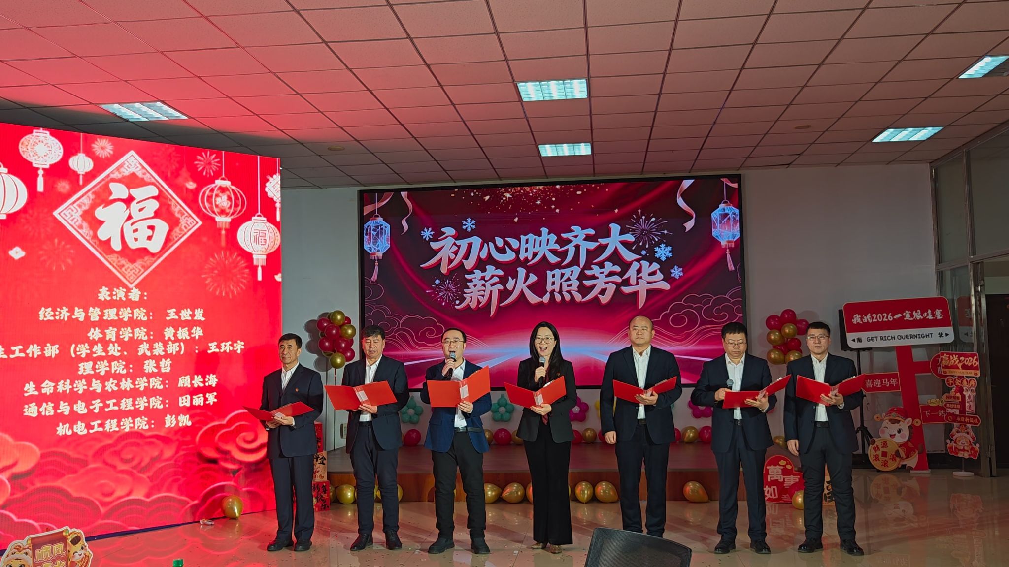 金馬踏春送福至,丹心育人譜新篇。12月30日下午,學校在東區(qū)就業(yè)指導中心二樓舉辦“同心筑夢共赴新程”學工系統(tǒng)辭舊迎新聯(lián)歡會。校黨委書記丁宏,校長、黨委副書記郝文斌,黨委副書記張文治出席,全體輔導員和相關職能部門同志齊集一堂、共迎新年。