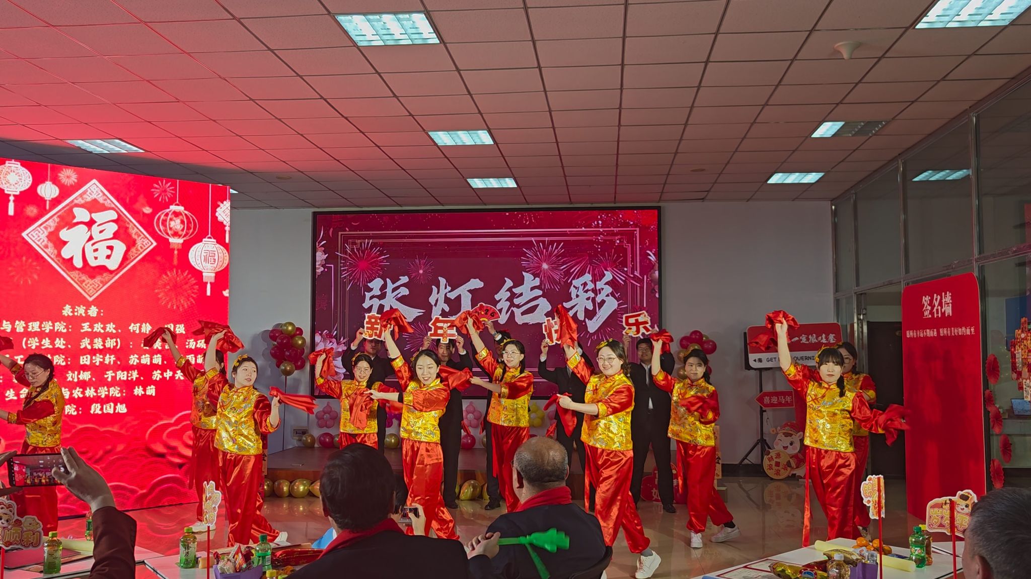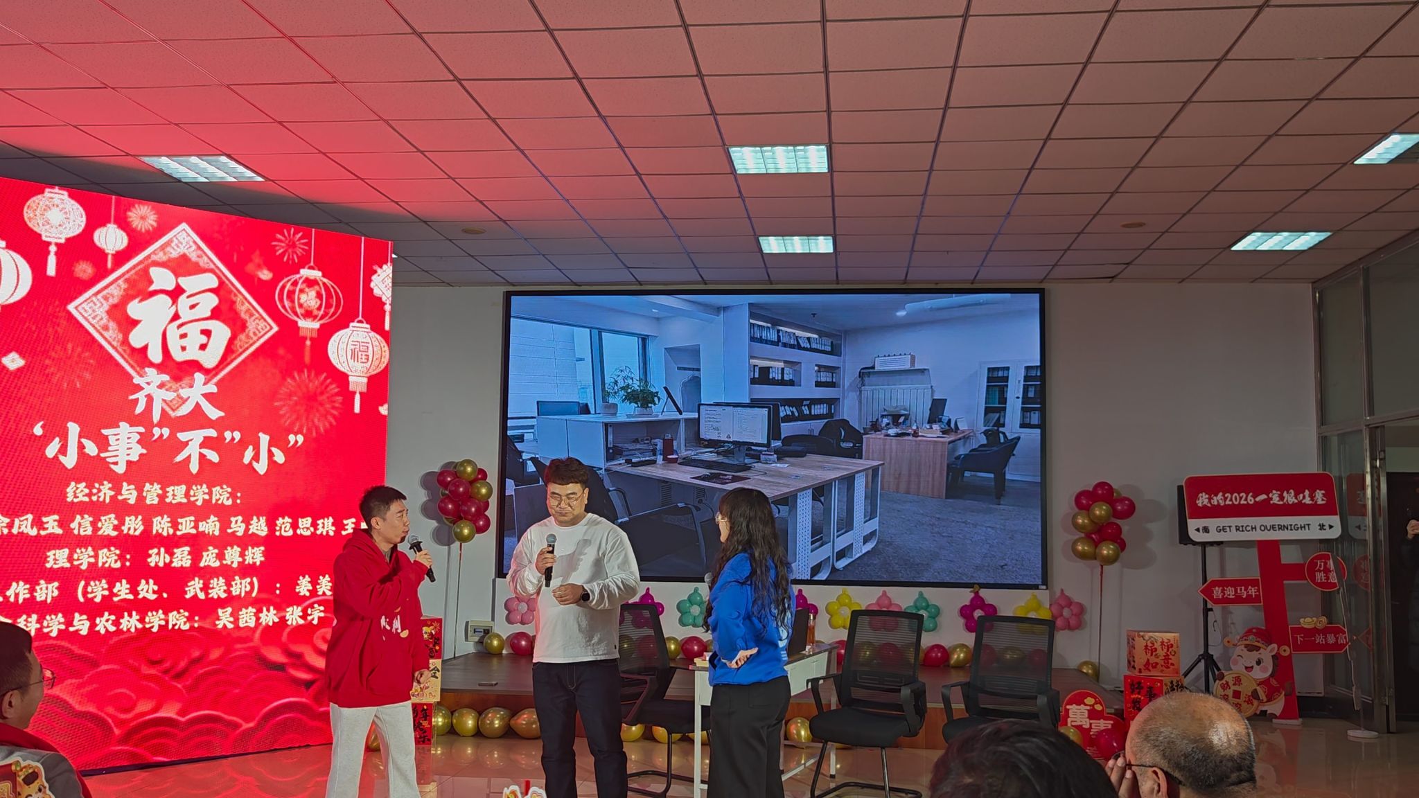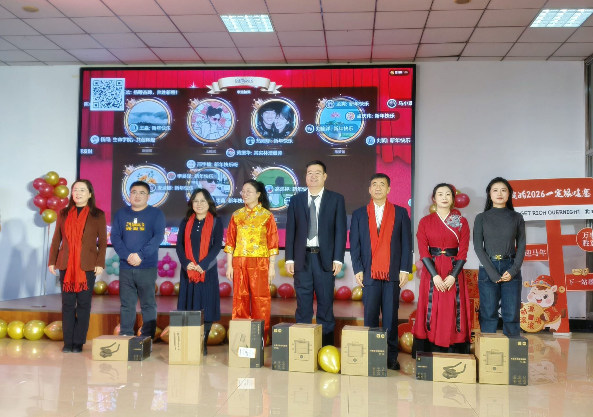 整場聯(lián)歡會高潮迭起,精彩不斷,穿插其間的游戲互動與幸運抽獎環(huán)節(jié)更是增添了濃濃的新年喜慶氛圍。校領導為現(xiàn)場互動環(huán)節(jié)里喜中幸運獎的輔導員頒發(fā)了紀念禮品,聯(lián)歡會在《相親相愛一家人》的大合唱中圓滿落幕。