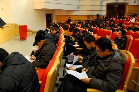 3月7日下午,我校在音樂(lè)廳召開全校處級(jí)黨政領(lǐng)導(dǎo)班子和領(lǐng)導(dǎo)干部2011年度考核測(cè)評(píng)大會(huì)。校黨委書記李海紅,校黨委副書記王鳳琴、蓋元臣,校黨委常委、紀(jì)委書記張學(xué)軍,副校長(zhǎng)鄭喜群、王剛、呂曉輝、李英杰,校工會(huì)主席李敏義,校長(zhǎng)助理、教務(wù)處處長(zhǎng)張樹軍,校長(zhǎng)助理、黨辦校辦主任尹鷗出席大會(huì)。學(xué)校副處級(jí)以上干部、民主黨派負(fù)責(zé)人、校級(jí)以上學(xué)科帶頭人和正高級(jí)專業(yè)技術(shù)職務(wù)人員參加了測(cè)評(píng)大會(huì)。