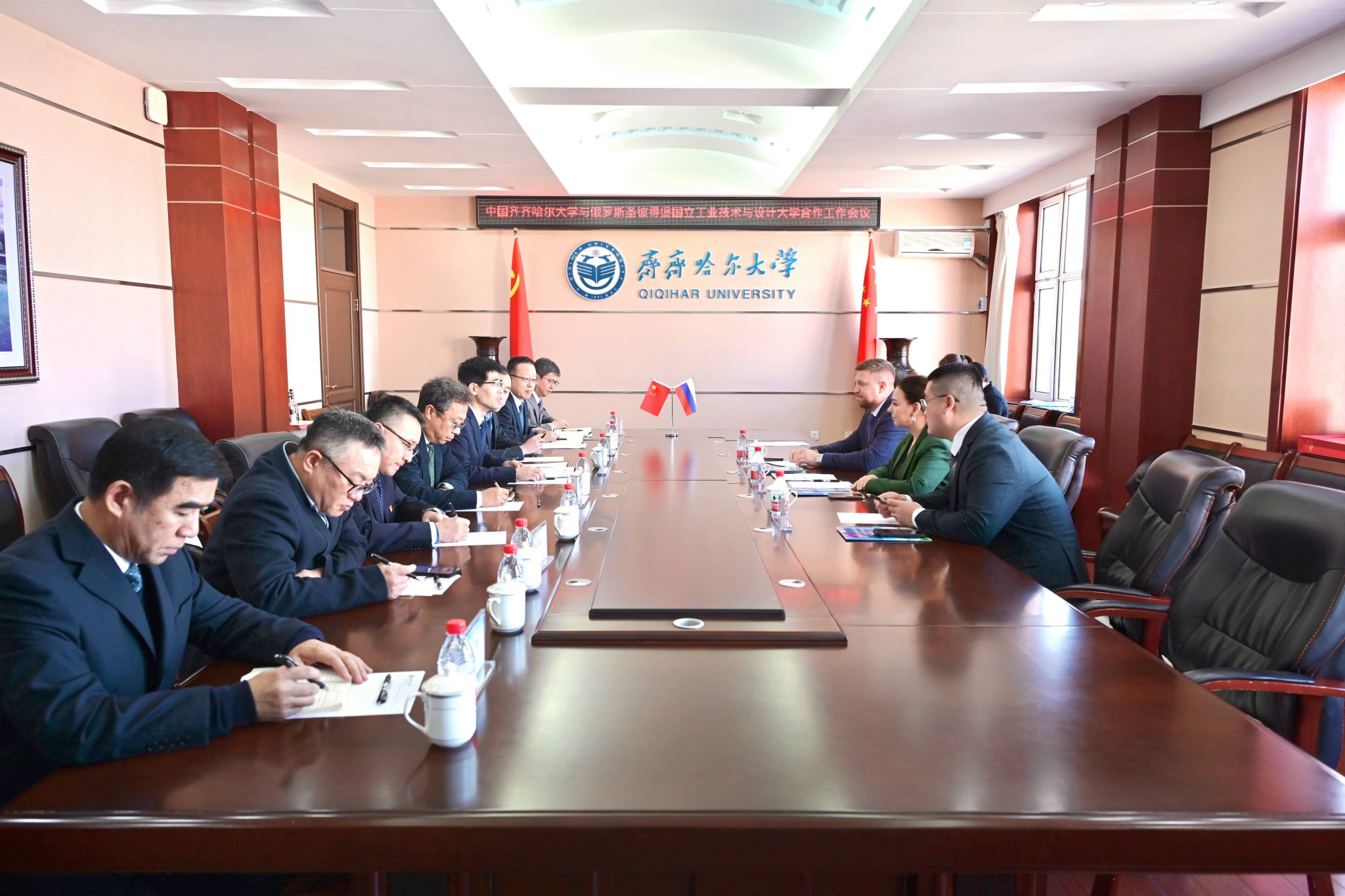 徐廣洲代表學(xué)校對(duì)俄方一行來訪表示熱烈歡迎,介紹了我校辦學(xué)歷史、學(xué)科特色、科研平臺(tái)及人才培養(yǎng)情況,并回顧了兩校合作歷程。他表示,圣彼得堡國立工業(yè)技術(shù)與設(shè)計(jì)大學(xué)辦學(xué)實(shí)力突出、學(xué)科優(yōu)勢(shì)明顯,與我校在輕工、材料、設(shè)計(jì)等領(lǐng)域高度契合,合作前景廣闊,申辦中外合作辦學(xué)機(jī)構(gòu),將為兩校搭建更高水平的科研文化交流平臺(tái),共促雙方高質(zhì)量發(fā)展。
