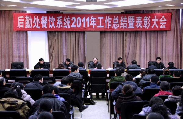 1月7日下午,后勤處在德潤(rùn)大廈四樓會(huì)議室召開(kāi)2011年度伙食工作總結(jié)表彰大會(huì)。副校長(zhǎng)王剛出席會(huì)議,后勤處班子成員、各科科長(zhǎng)、各食堂經(jīng)理及伙食系統(tǒng)全體員工共計(jì)200余人參加了會(huì)議,會(huì)議由后勤處主管伙食工作的副處長(zhǎng)楊慶忠主持。