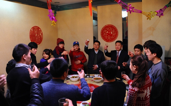 春節(jié)來臨,留校學(xué)生的生活始終牽掛著學(xué)校領(lǐng)導(dǎo)的心。1月22日除夕下午,伴隨著迎接新年的鞭炮聲,從哈爾濱特意返校的校黨委書記李海紅、校長馬立群在副校長鄭喜群,校長助理、黨校辦主任尹鷗,學(xué)生處處長黃偉中,研究生學(xué)院黨委書記王中雙,研究生處處長沙偉、國際交流學(xué)院院長胥軍等相關(guān)職能部門領(lǐng)導(dǎo)的陪同下來到學(xué)生公寓,親切看望春節(jié)留校學(xué)生。并在培訓(xùn)中心餐廳設(shè)宴招待留校學(xué)生,共吃團(tuán)圓飯,為他們送去了新春祝福和學(xué)校關(guān)懷。