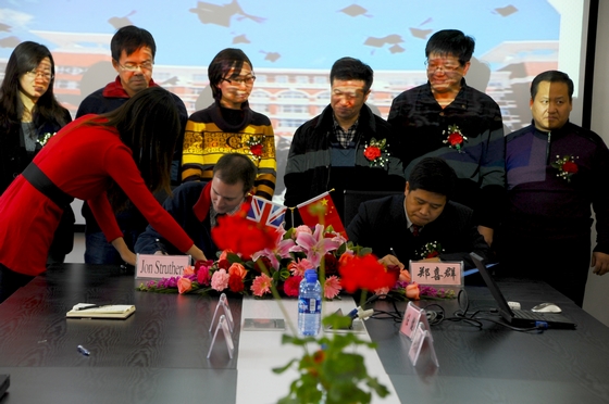 博天糖業(yè)運營發(fā)展總監(jiān)Jon Struthers先生、我校副校長鄭喜群出席簽字儀式。博天糖業(yè)公司有關領導及我校教務處處長李英杰、實踐教學與設備管理處處長張德慶,食品學院黨委書記楊淳、副院長任健、副書記彭凱等參加簽約會議。