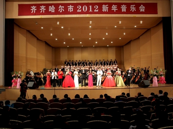 齊齊哈爾市有關(guān)部門領(lǐng)導(dǎo),我校領(lǐng)導(dǎo)馬立群、王鳳琴、蓋元臣、鄭喜群、鄧啟剛、呂曉輝,齊齊哈爾市各部委辦局的領(lǐng)導(dǎo),各縣委、縣政府、區(qū)委、區(qū)政府的領(lǐng)導(dǎo),我校各部處、學(xué)院的領(lǐng)導(dǎo),校地共建合作單位的領(lǐng)導(dǎo),鶴城各界千余名群眾,與我校師生員工一起歡聚一堂,共賞高雅音樂,喜迎2012新年。