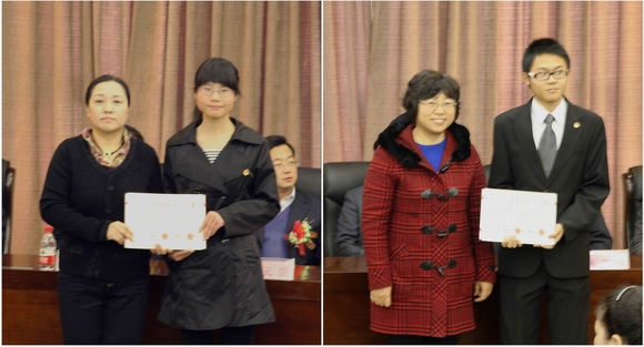 副校長鄭喜群宣讀了第十二屆“挑戰(zhàn)杯”全國大學(xué)生課外學(xué)術(shù)科技作品競賽中我校獲獎作品及師生名單。