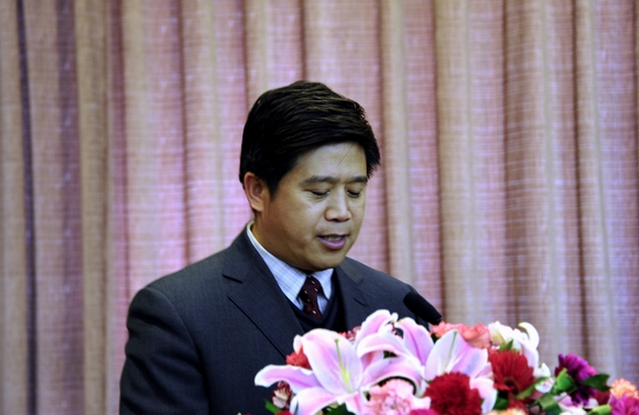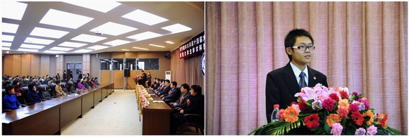 第十二屆“挑戰(zhàn)杯”全國大學(xué)生課外學(xué)術(shù)科技作品競賽三等獎獲獎學(xué)生、學(xué)校首批大學(xué)生學(xué)術(shù)科技創(chuàng)新團(tuán)隊代表、校學(xué)生會副主席、食品與生物工程學(xué)院09級學(xué)生肖振天同學(xué)代表全校學(xué)生做了發(fā)言。他表示在今后的科技創(chuàng)新實踐中,繼續(xù)發(fā)揚艱苦奮斗、嚴(yán)謹(jǐn)求實的精神,多出好作品,為我校青年學(xué)生樹立良好的榜樣,為母校增光添彩。