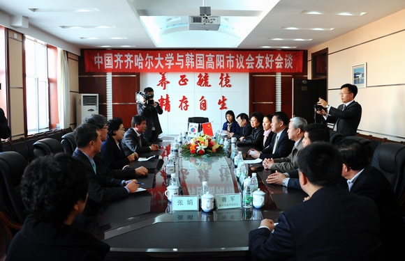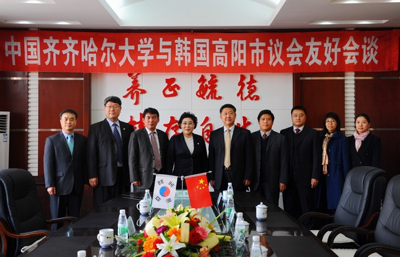 馬立群校長對金畢禮議長一行的來訪表示熱烈歡迎,他向來賓詳細(xì)介紹了我校教育教學(xué)的發(fā)展情況以及同韓國尤其是高陽市的教育界開展教育合作的相關(guān)情況。他說,齊齊哈爾市和高陽市是友好合作城市,此次高陽市議會代表團(tuán)的到來,必將進(jìn)一步增進(jìn)兩所城市之間的友誼,促進(jìn)包括教育在內(nèi)的各個領(lǐng)域的活動的開展,他希望通過雙方高校間的合作共同打造中韓友誼的橋梁,為兩國留學(xué)生創(chuàng)造更多的互相學(xué)習(xí)的機(jī)會,促進(jìn)雙方教育合作的深入開展。